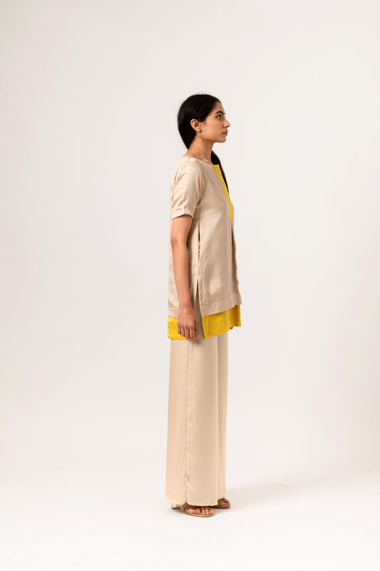 Yellow Elastic Wasit Side Slit Cotton Dress
