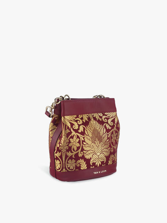 The Veda Potli Bag - Beige Kosa Silk & Leather with Zardozi & Handmade Tassel Bunches