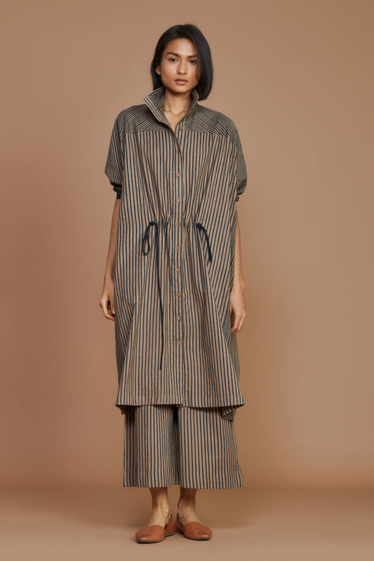 Brown With Charcoal Striped Kaftan Co-Ord Set