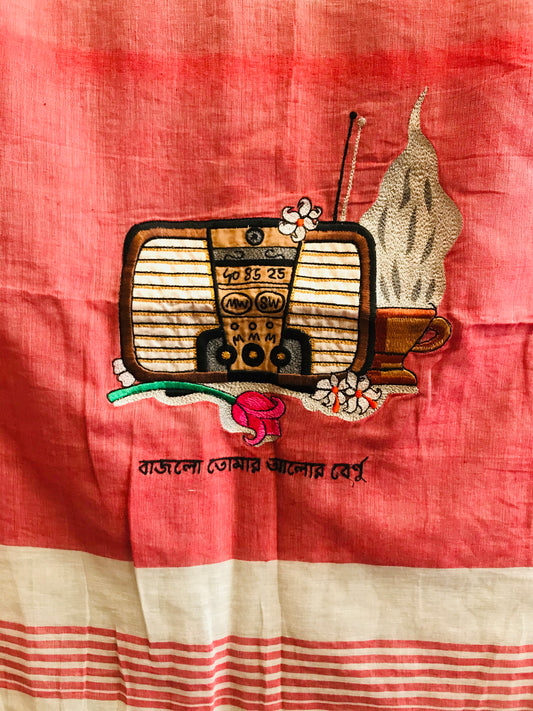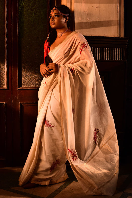 White Jamdani Hazaron Khawaisen Embroidered Saree