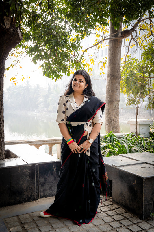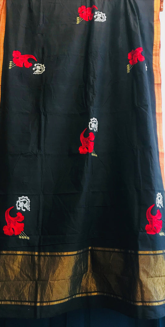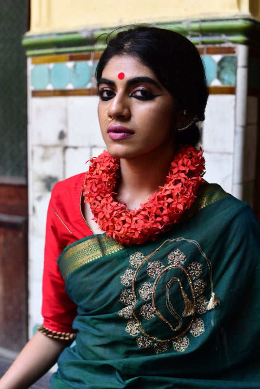 Broad Red Border Gawrod Silk With Bengal Jewelry