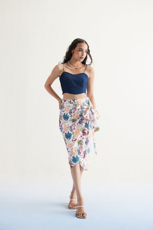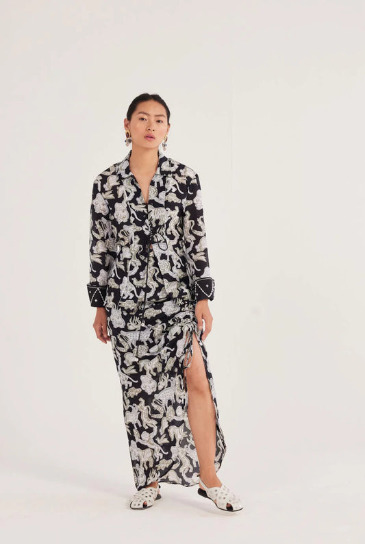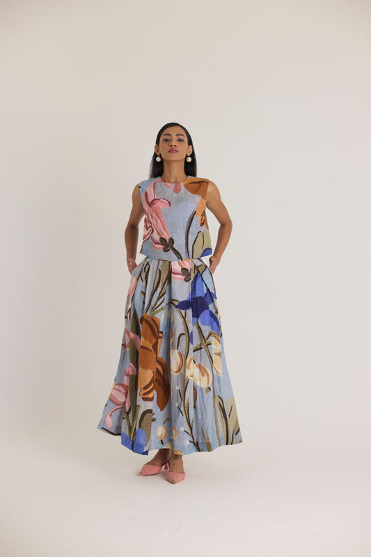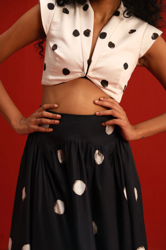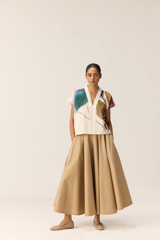 Abstract Print Applique Cotton Shirt Skirt Set of 2