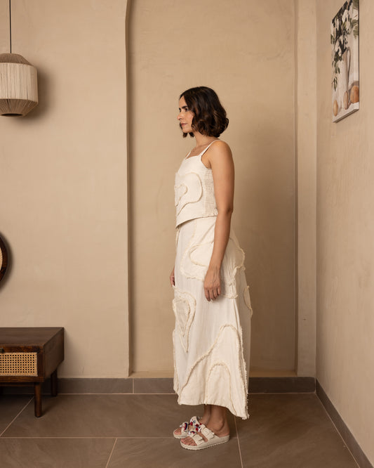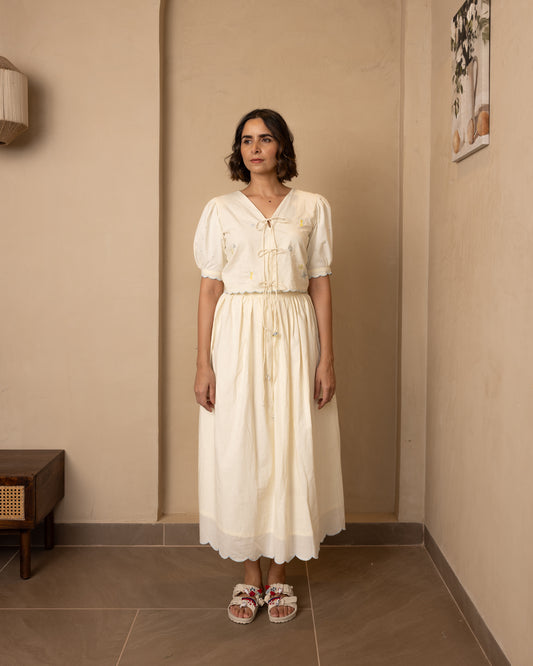 White Cross Stitch Embroidery Cotton Skirt Top Set of 2