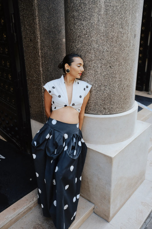 Black Cross Stitch Embroidery Cotton Skirt Top Set of 2