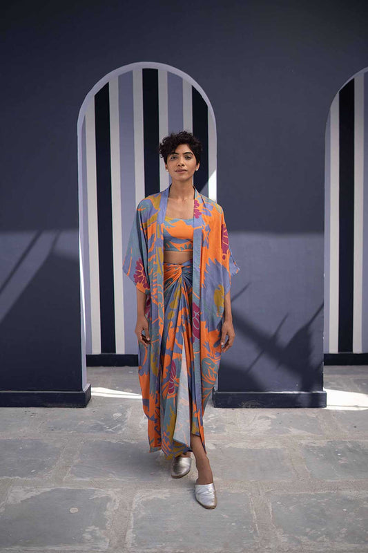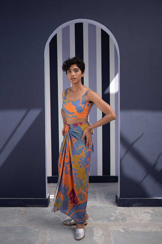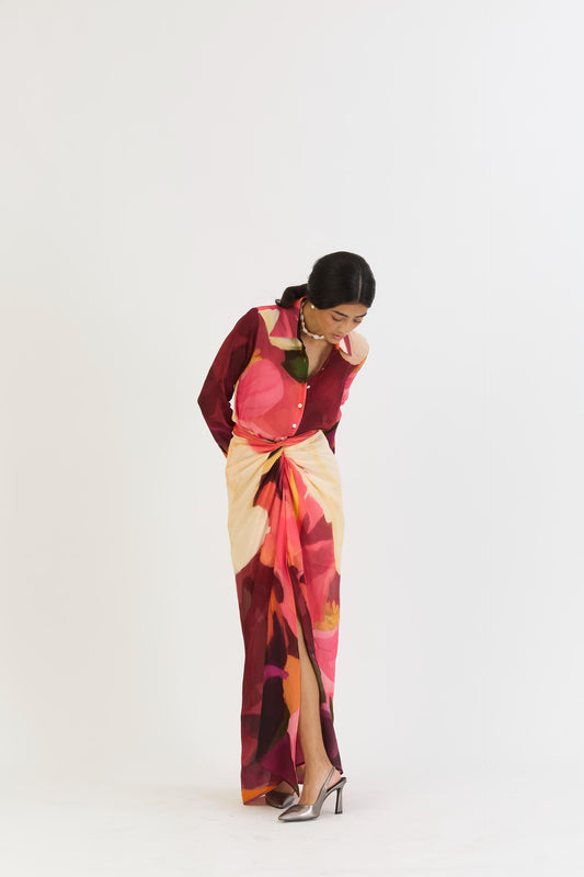 Pink-Orange Color-Blocked Maxi Skirt Set
