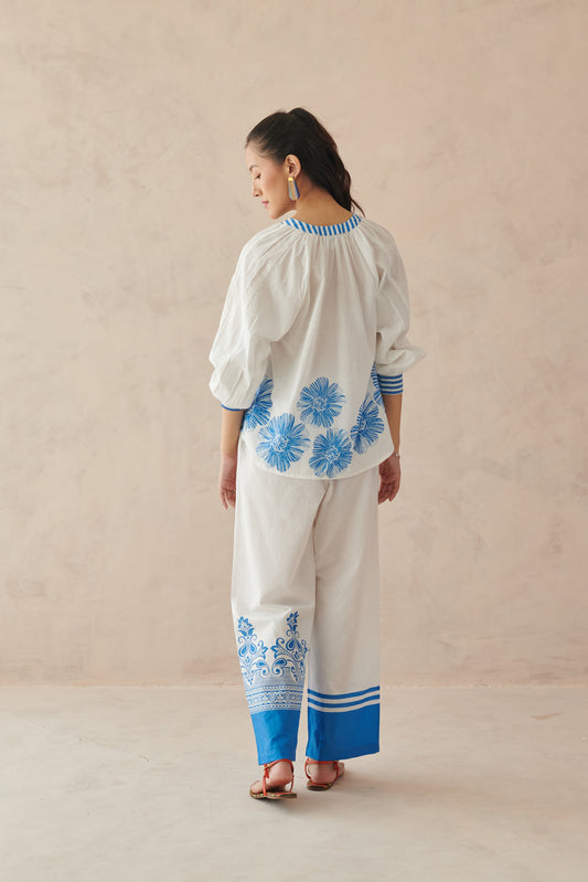 Vaya Blue White Mosaic Floral Top