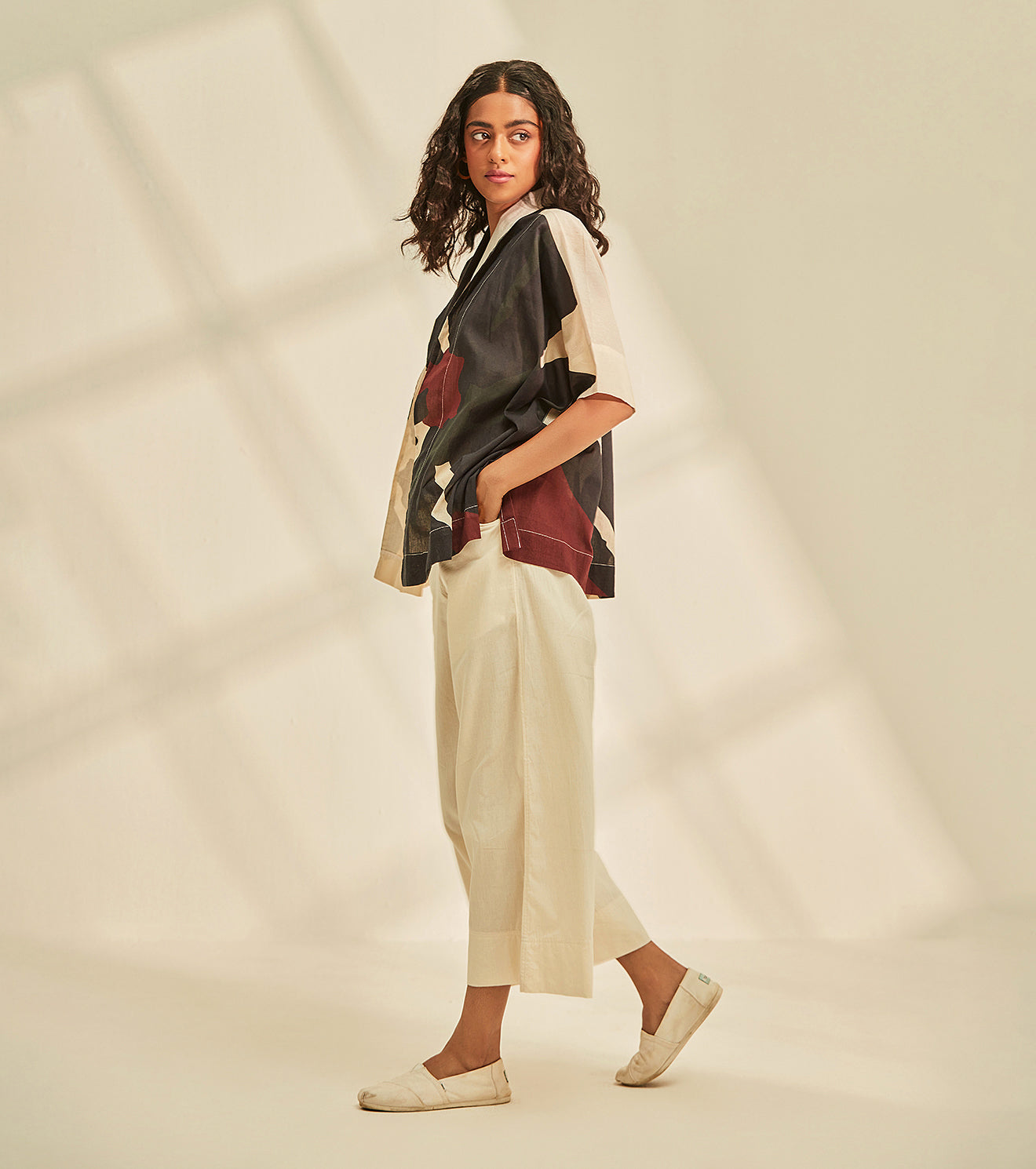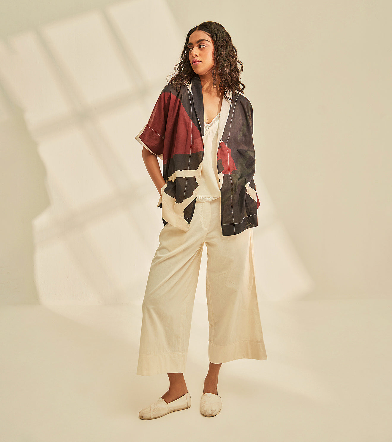 Aba cape is a signature study in style, featuring a unqiue abstraction. The shrug is for all and is crafted in soft cotton mul.Handcrafted in India.