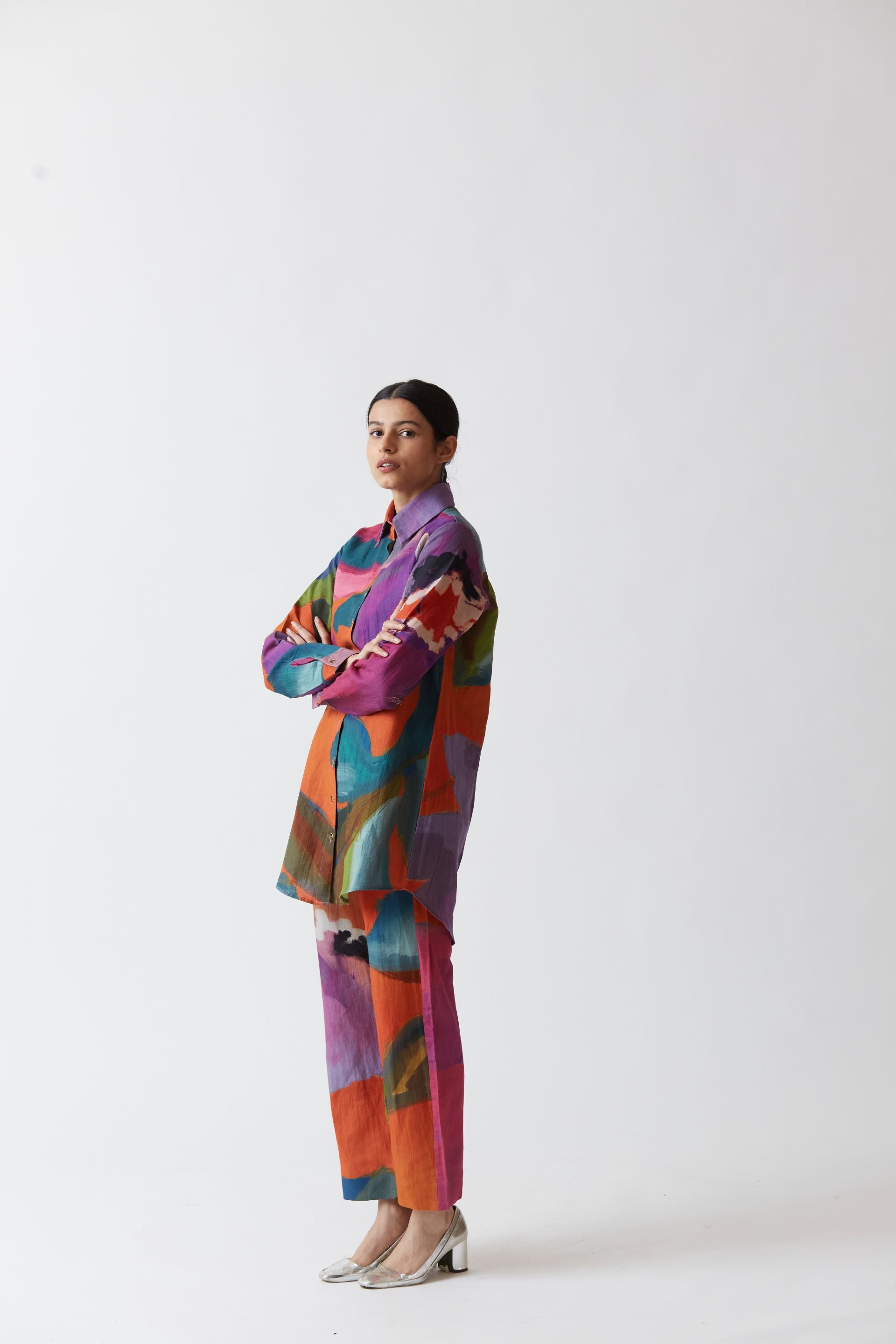 The set is crafted in the amethyst print carefully printed on Pure linen.