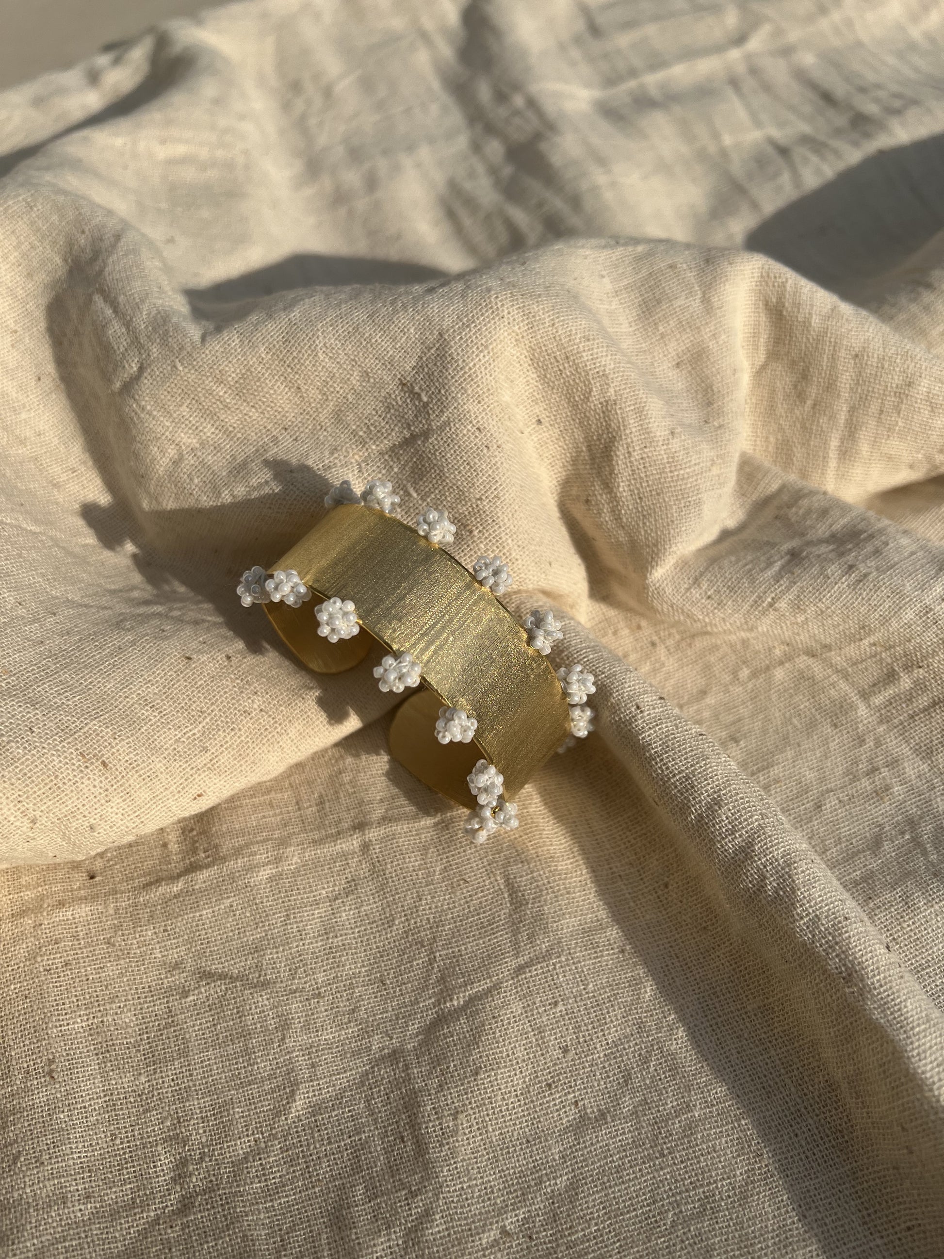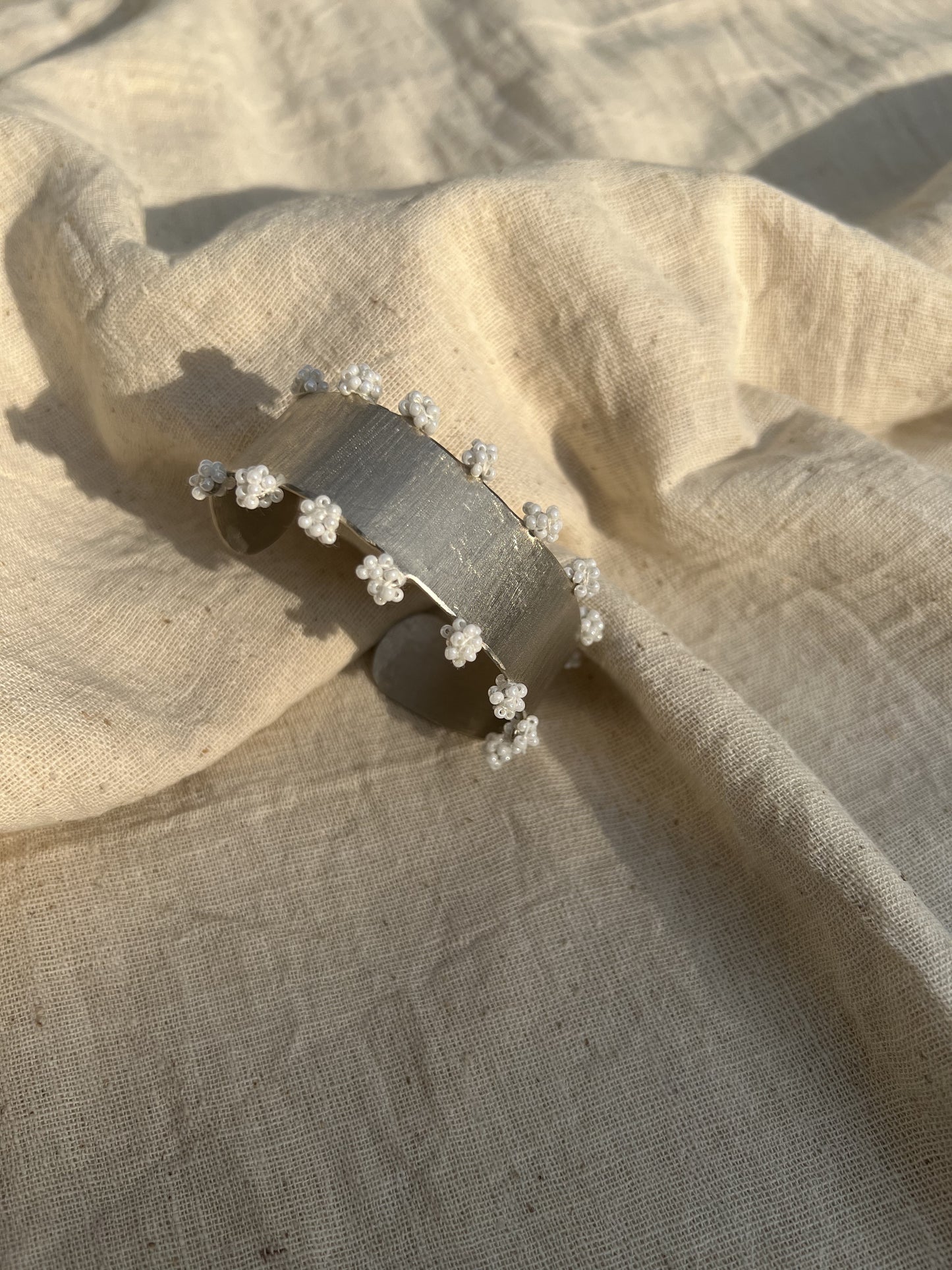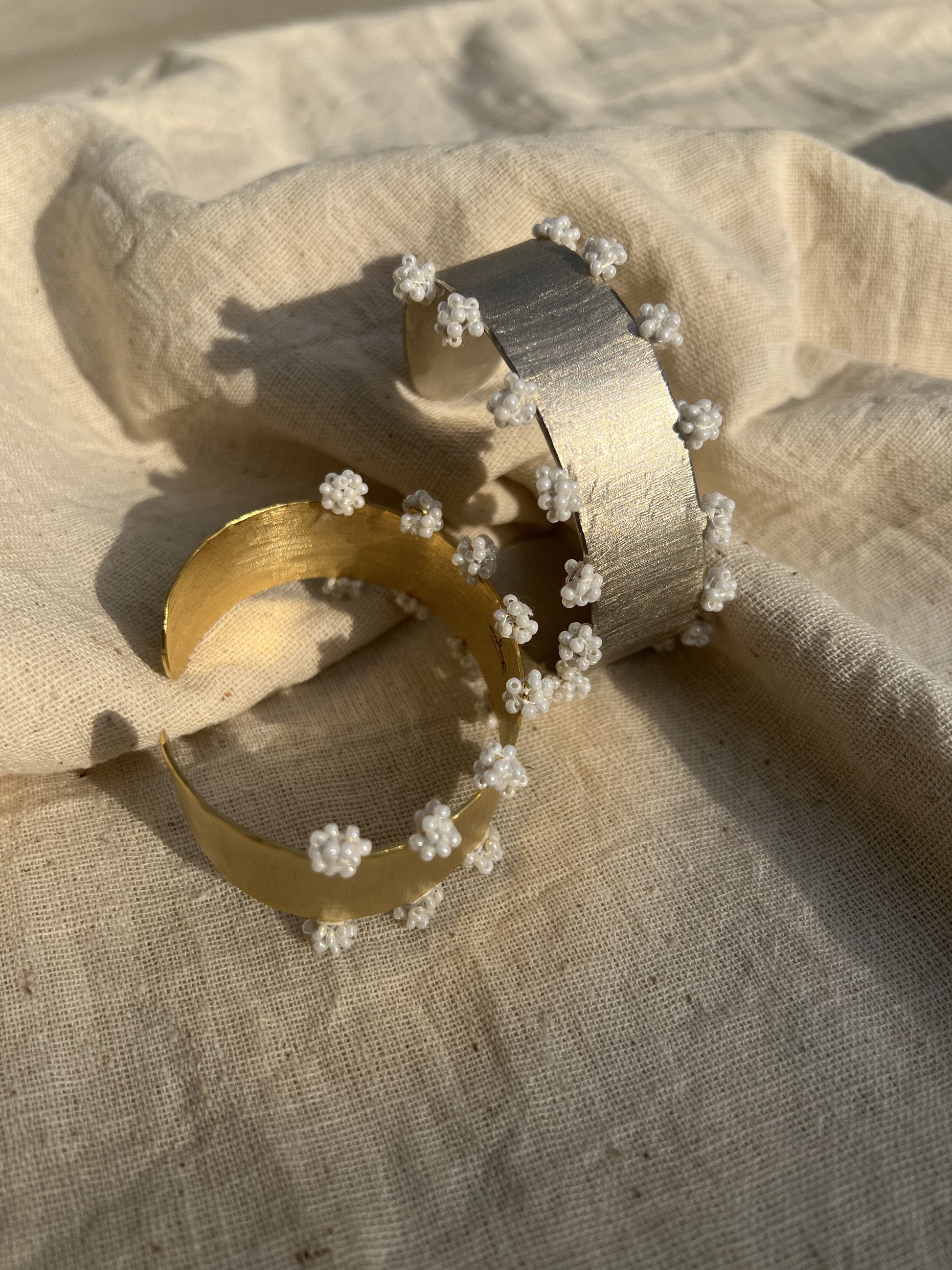 Brass,Cotton fabric, embellished with glass bead,Nickled plated