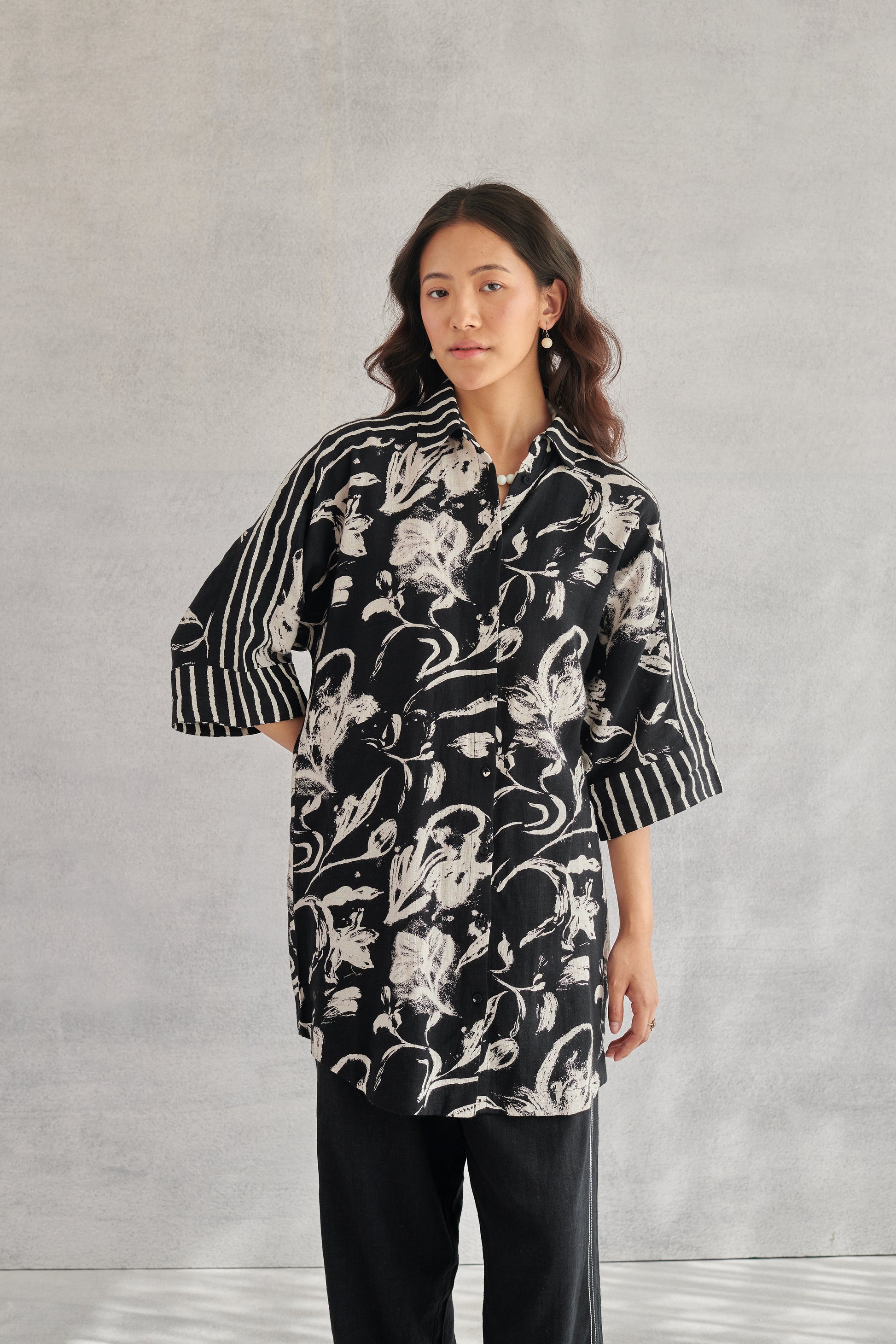 Longline silhouette for versatile styling—wear as a shirt or a short dress.