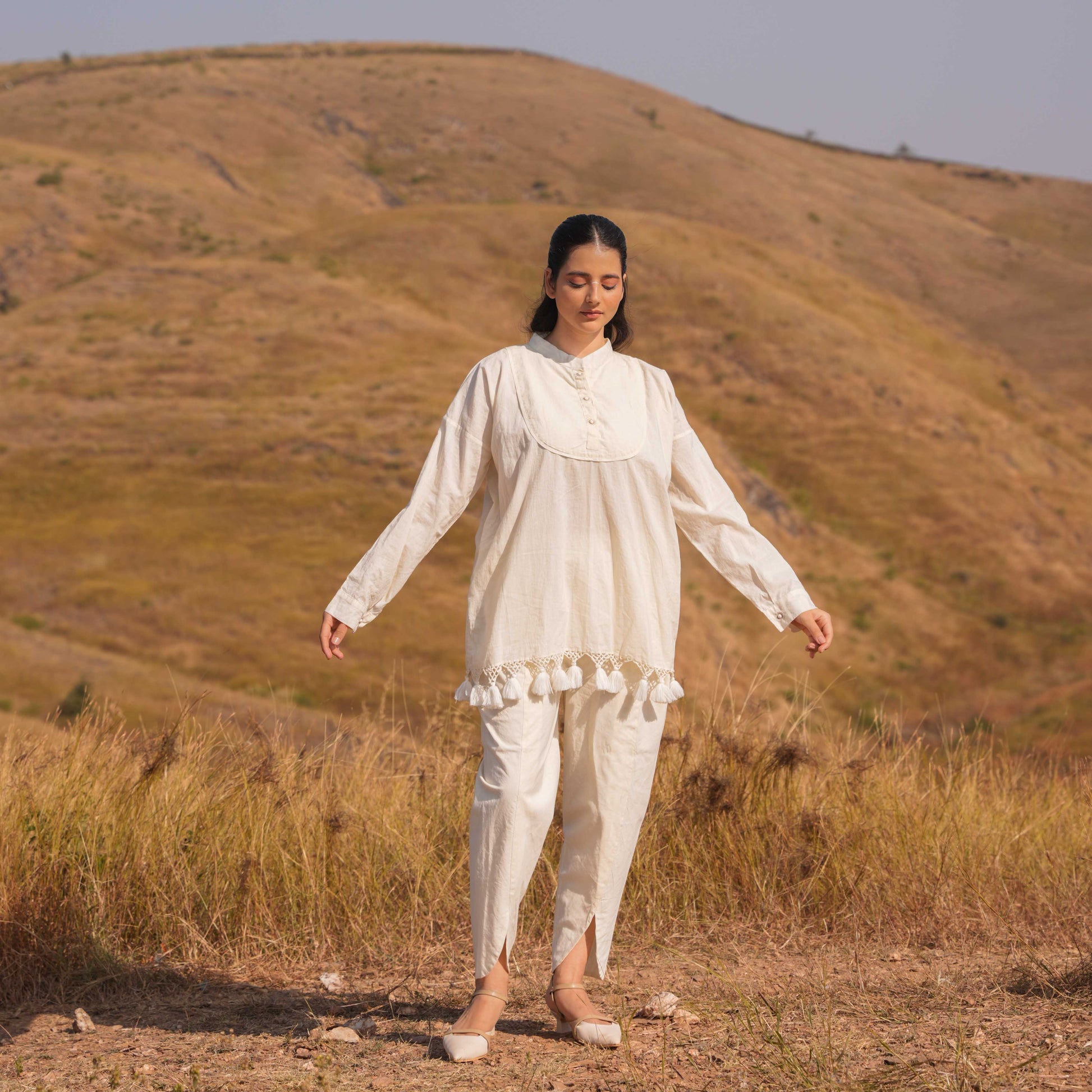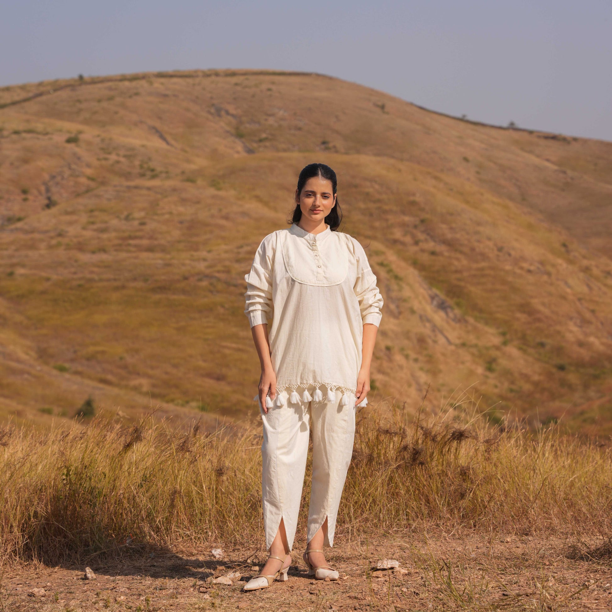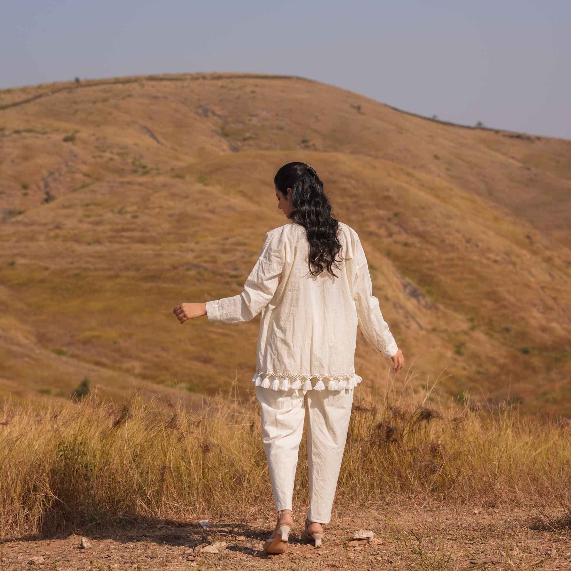 Paired with our Multi-Pocket Wrap Skirt, this ensemble combines practicality with style. The wrap skirt features multiple pockets for added functionality and a contemporary flair, making it versatile for both casual outings and more polished occasions.