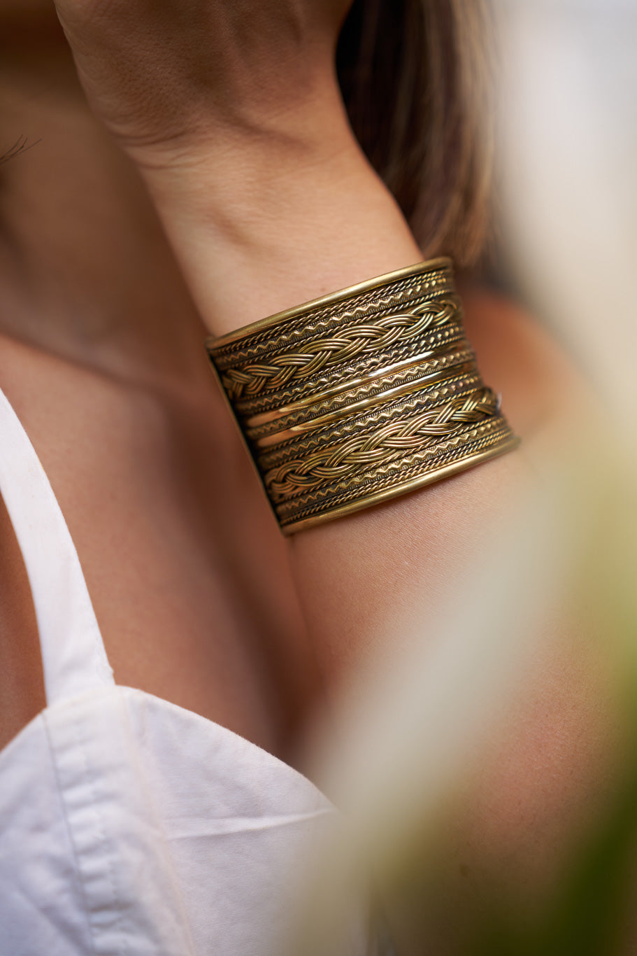 Handcrafted brass bangle. Flexible size. Ideal for medium to thick wrists. Not ideal for very lean wrists.
