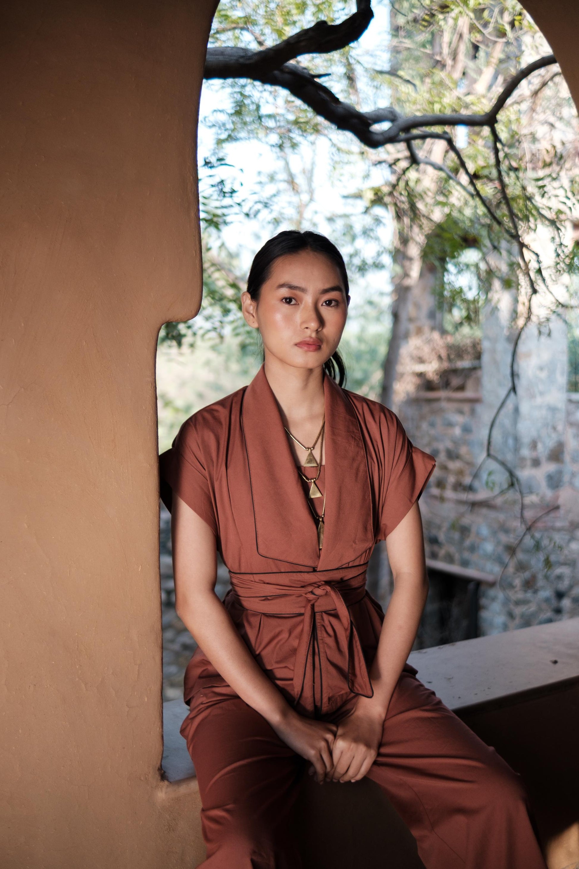 This shawl collar summer jacket featuring a contrasting piping detail and a statement belt can elevate any look and is surely a head turner.