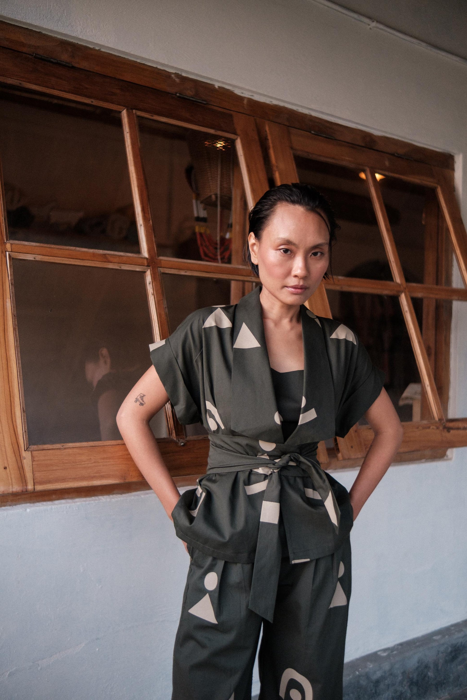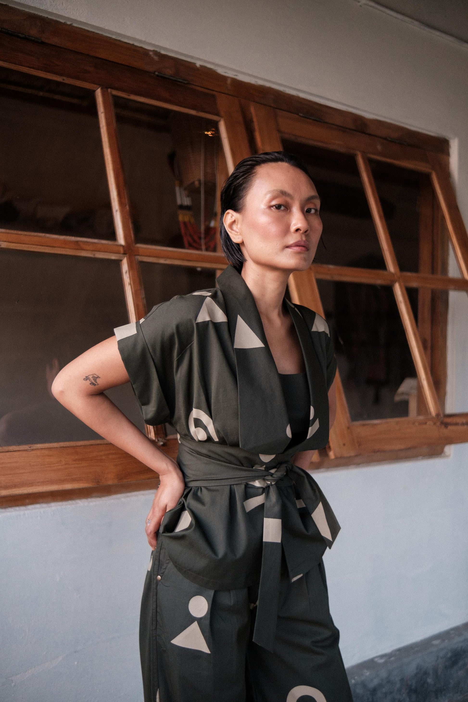 This shawl collar summer jacket featuring a contrasting piping detail and a statement belt can elevate any look and is surely a head turner.