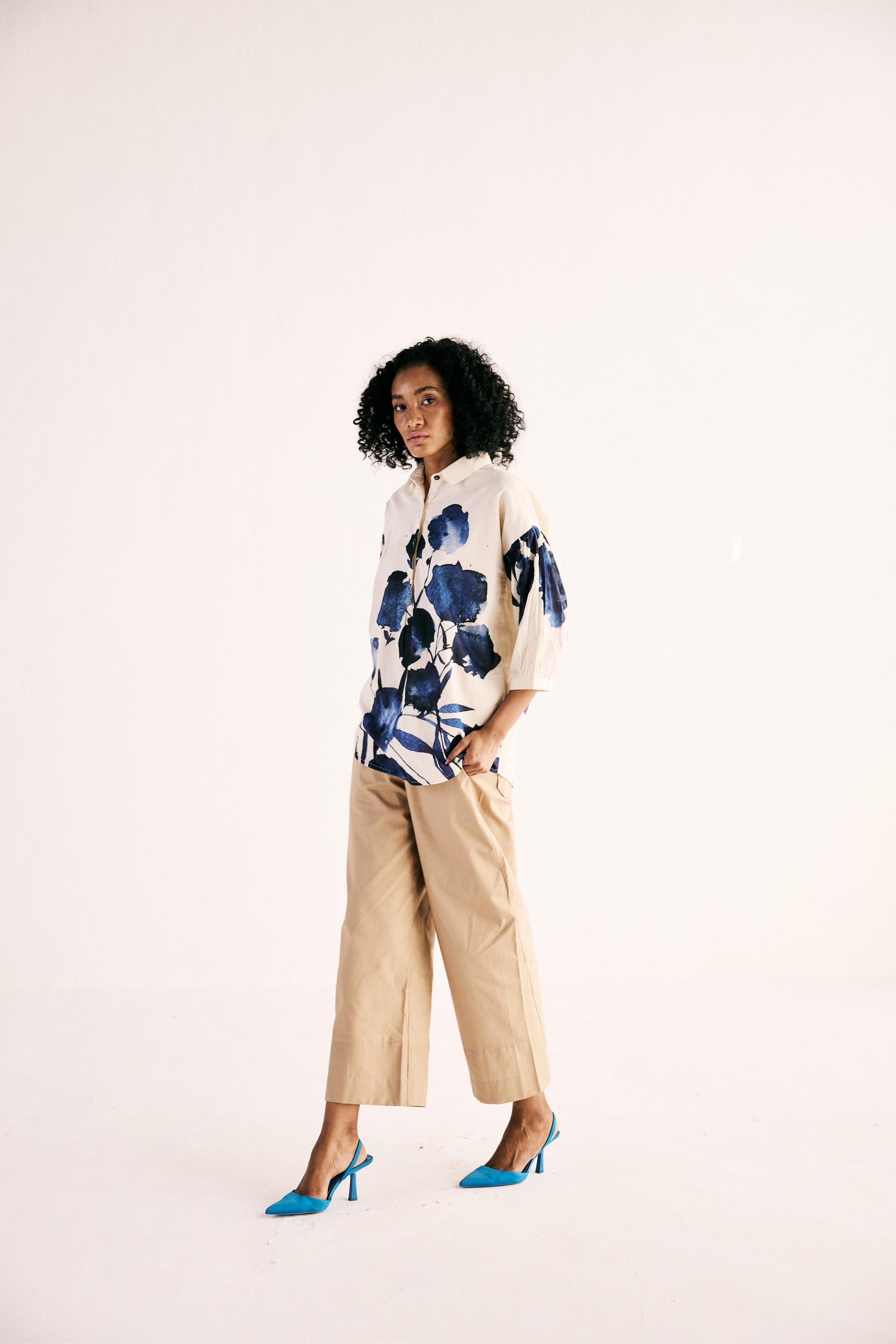 A vibrant floral printed button down shirt crafted in breathable cotton mul.