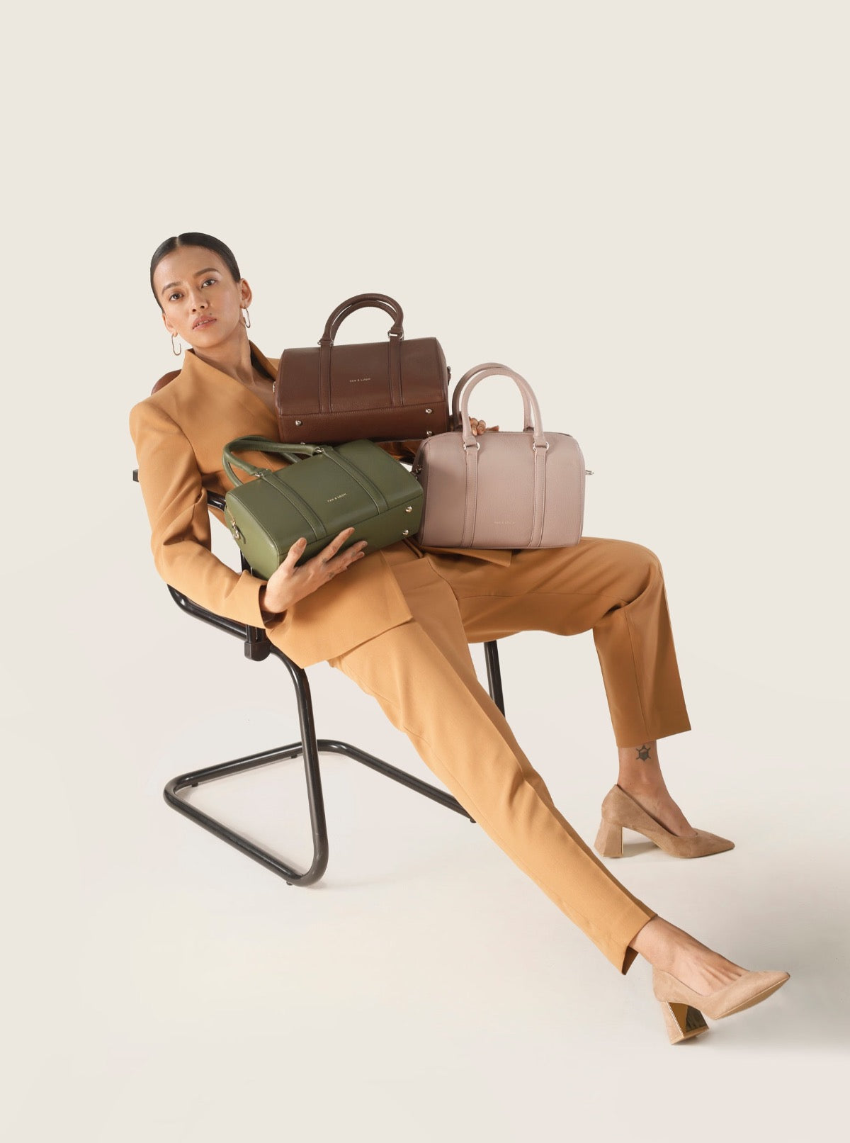 A classic must have in every woman’s wardrobe. Add a touch of sophistication to your workdays & weekend outings with the classic Boston Bag. The compact yet spacious leather bag has designed to been elegantly accompany you for both work and play. Crafted with premium pebble grain leather, light gold hardware & hand embossed with a distinct gold Tan & Loom logo. Slots & Features : 1 main compartment with a zipper closure, 1 interior zipper pocket, 1 slip pocket, light gold fittings, YKK nylon zipper & OOK metal zipper, jacquard branded lining