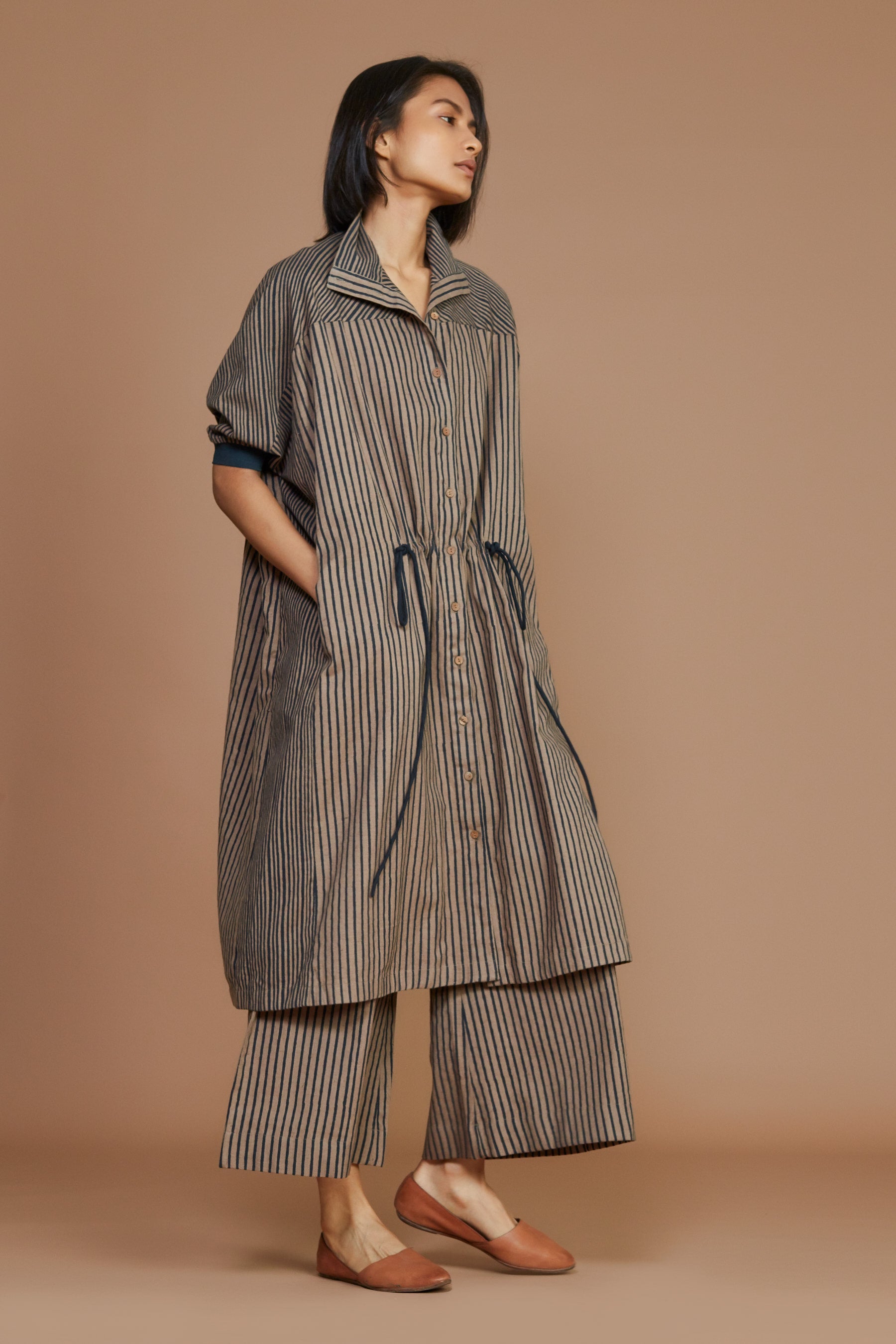 This smart High collar kaftan is a perfect bold yet comfortable look for your closet. It has an Easy fit with drawstrings at the waist gives a beautiful cinched look. Wear it with the matching pants from our collection and complete the look.