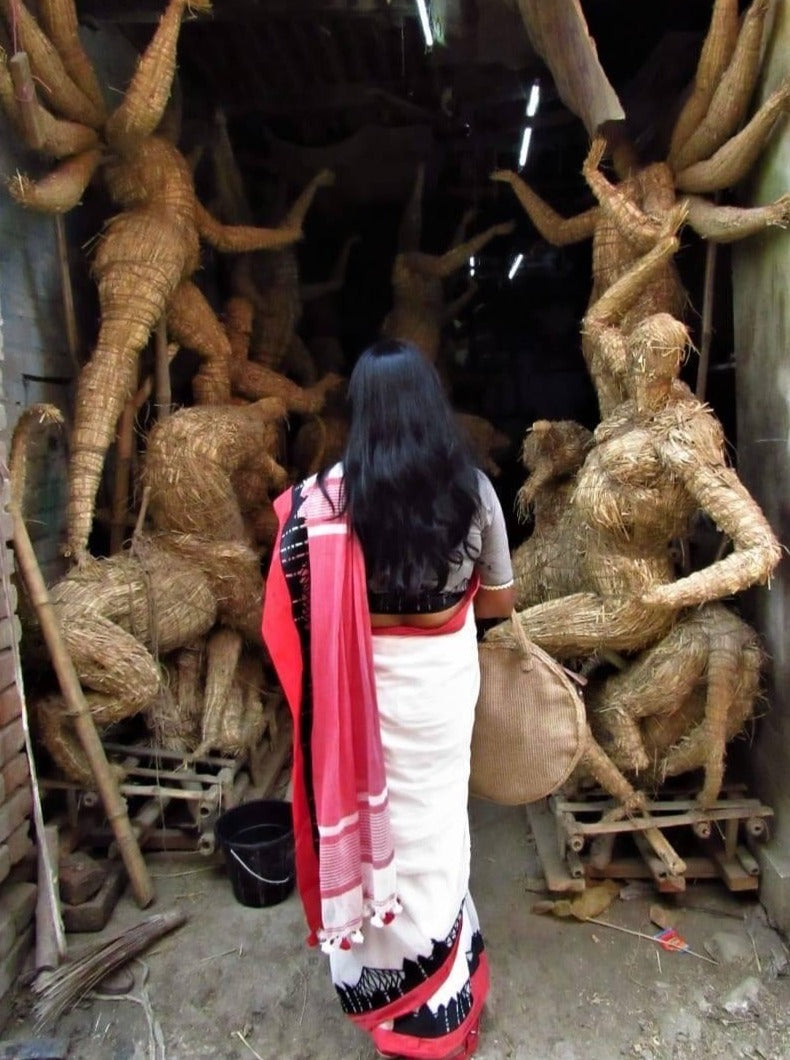 Handwoven Phulia cotton with Calcutta skyline embroidered along the entire length. Very Pujo Pujo. Very Calcutta.