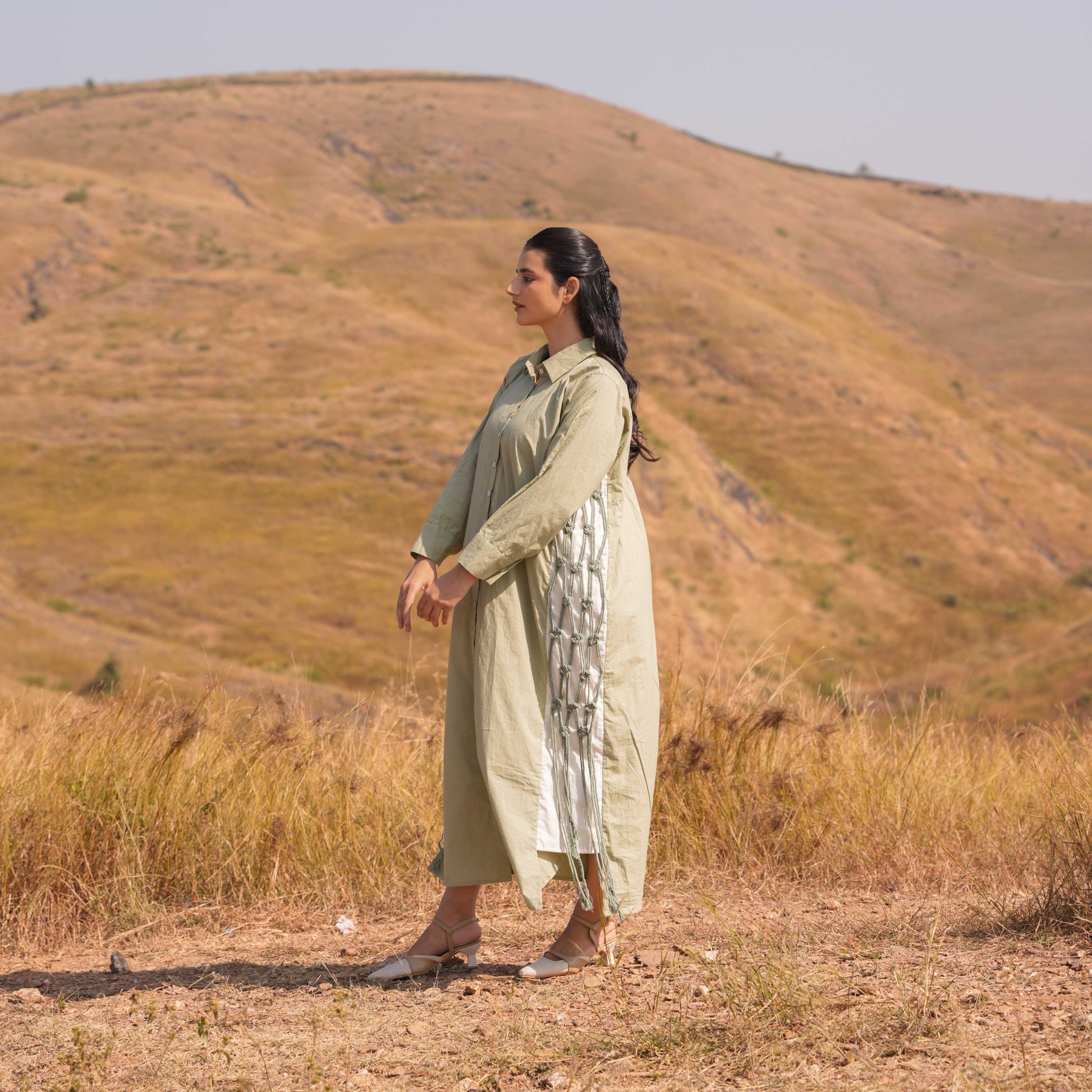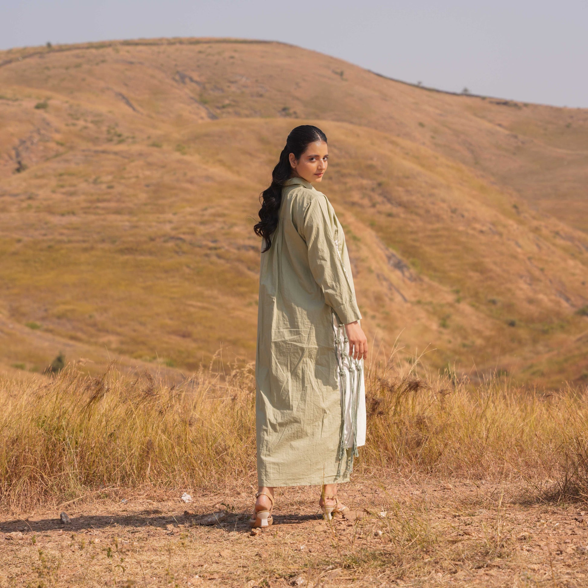 Paired with our versatile Free size Jacket, crafted with smocking adorned with bead details for a personalized fit. The jacket showcases elegant lace and floral borders, complemented by beautiful crochet tassels that enhance its artisanal charm.