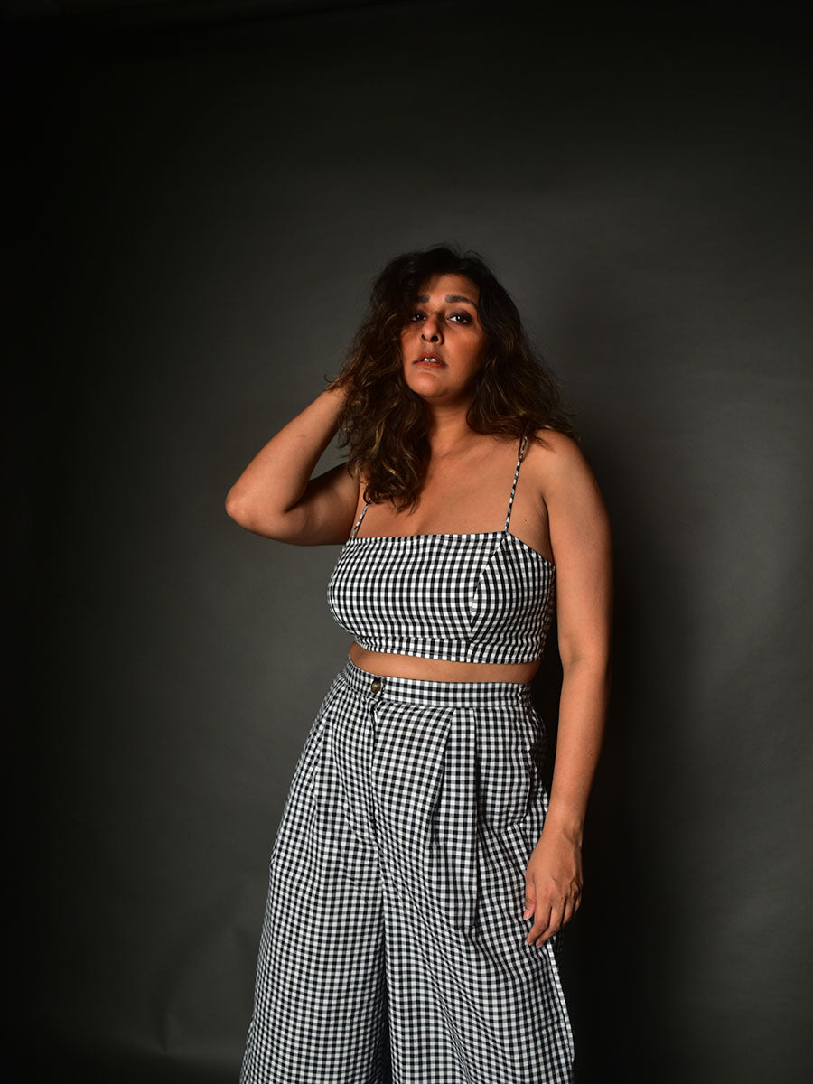 Introducing our versatile and chic checkered bralette – the wardrobe essential that effortlessly elevates your everyday style and sets the tone for any event! The bralette has thin spaghetti straps with an elasticated smocking back made to fit you comfortably. Whether you're embracing casual comfort on a regular day or gearing up for a dazzling party, this bralette seamlessly blends comfort and style. Pair with our Coco Pants for the full look, and layer with our Vera Jacket.