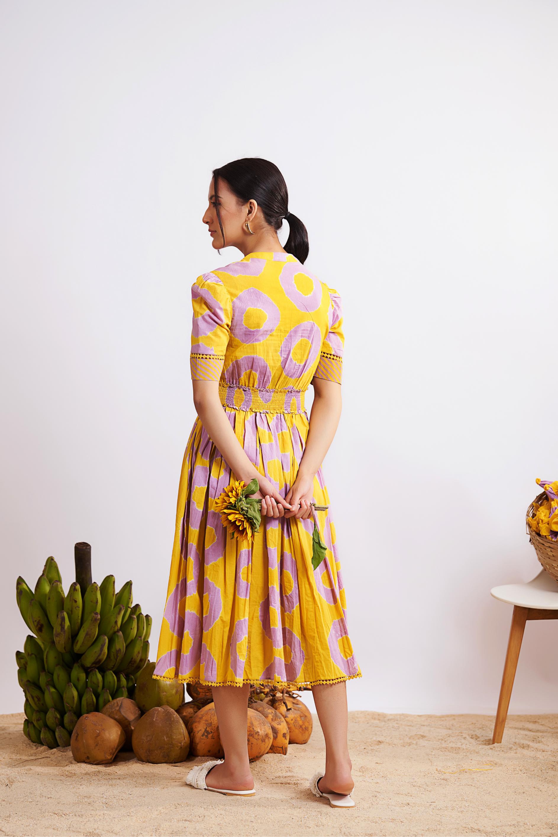 Daina Dress (Mustard and Lilac)