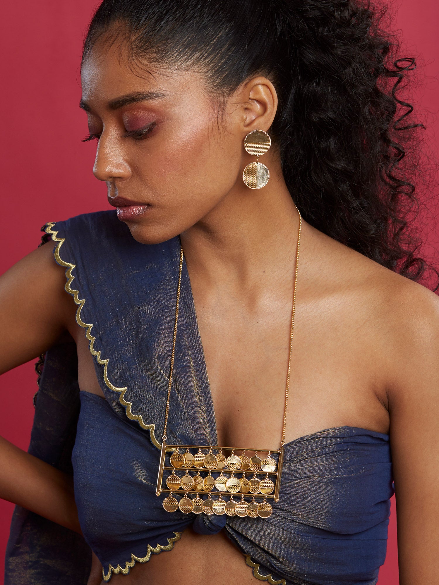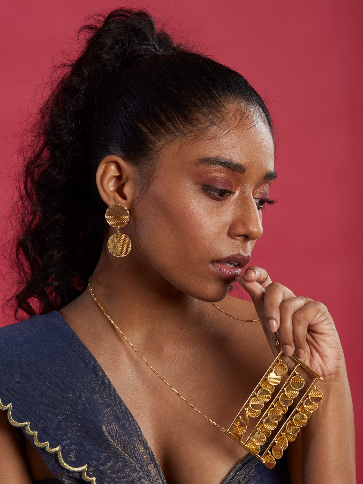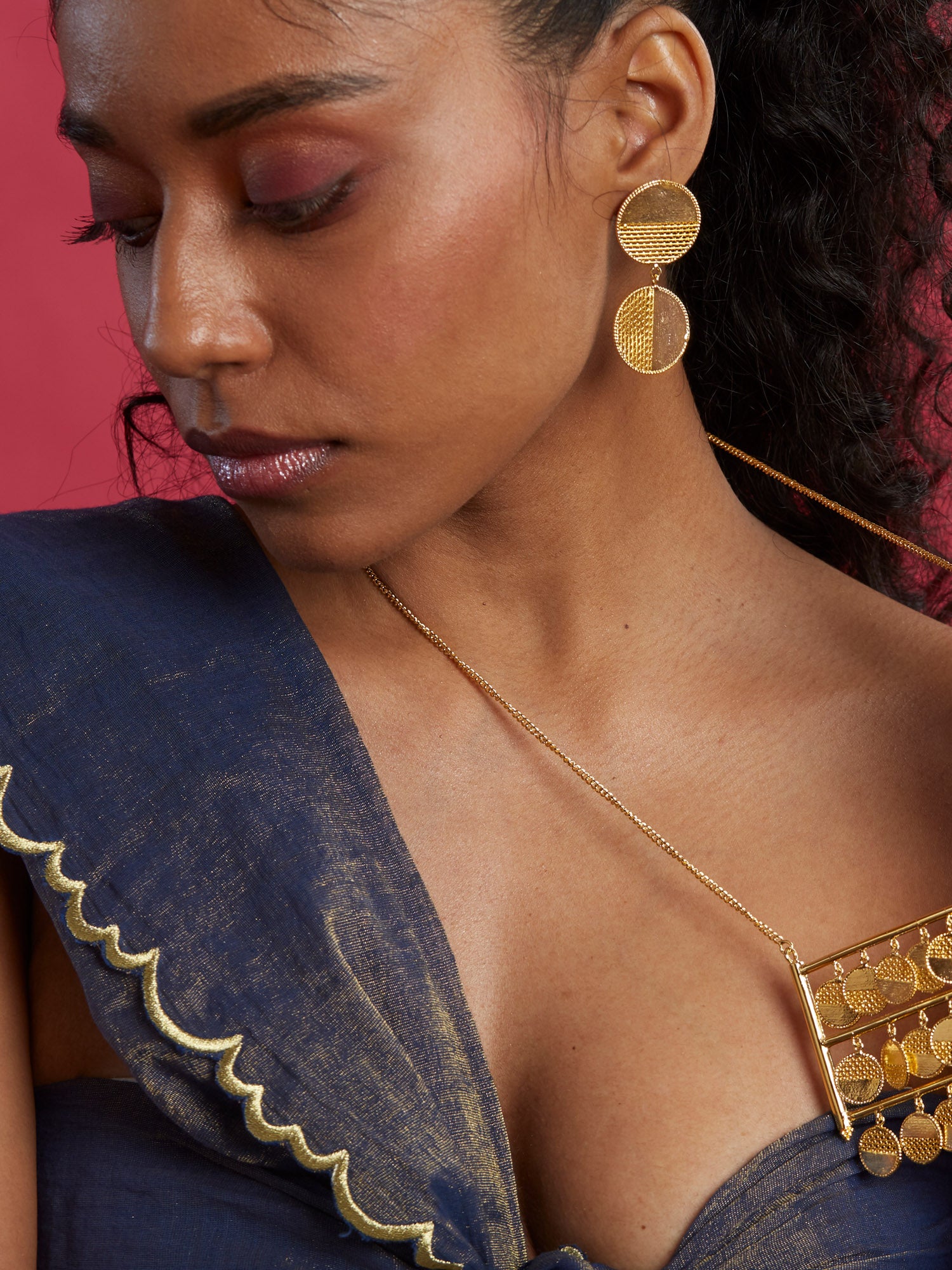 A marriage of luxurious Indian workmanship with contemporary styling, the 'Eclipse' earrings are meant to enchant. An evening staple for all occasions.