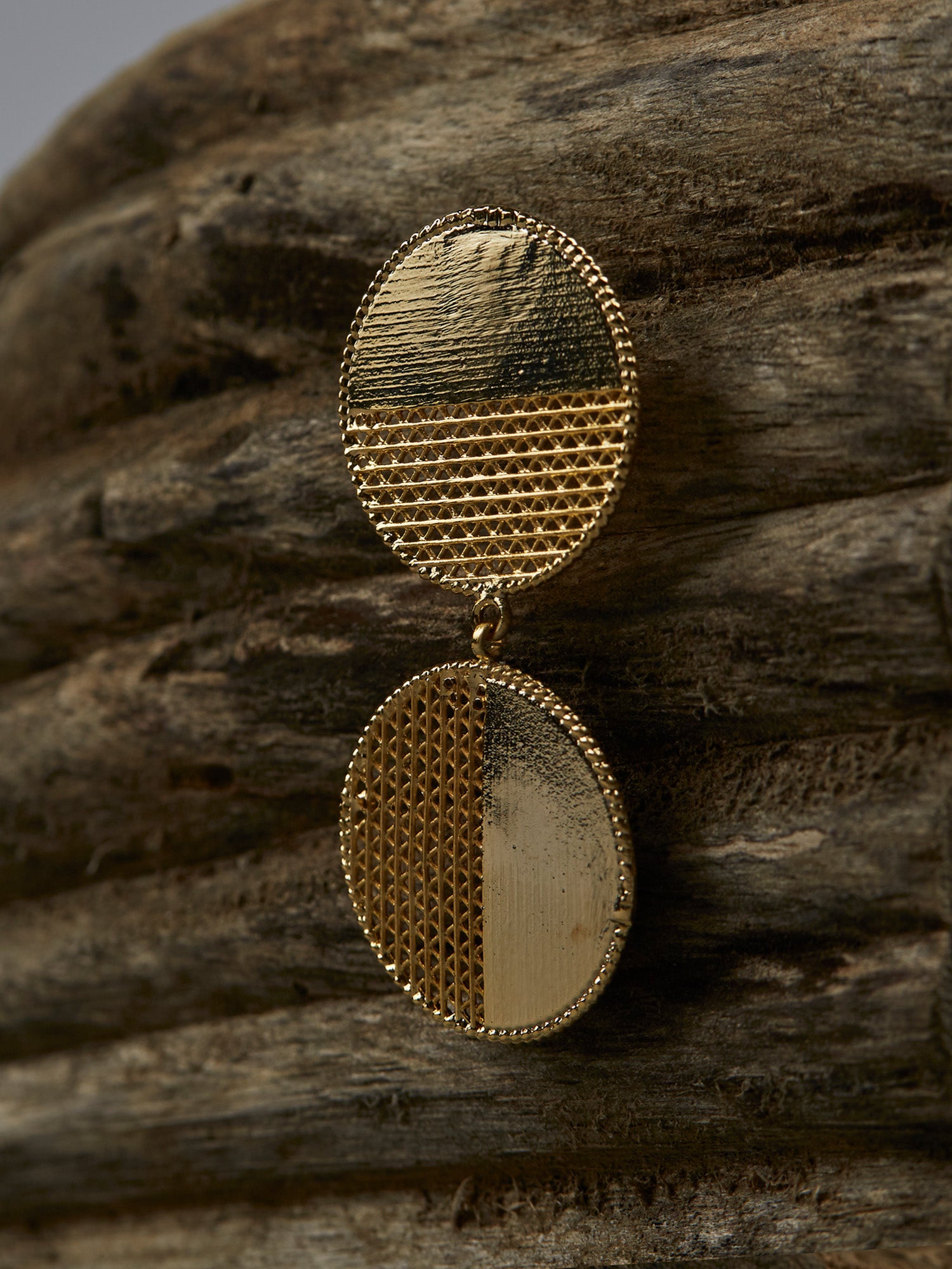 Reclaimed brass body with 92.5 silver earposts. Plated with 22K gold.