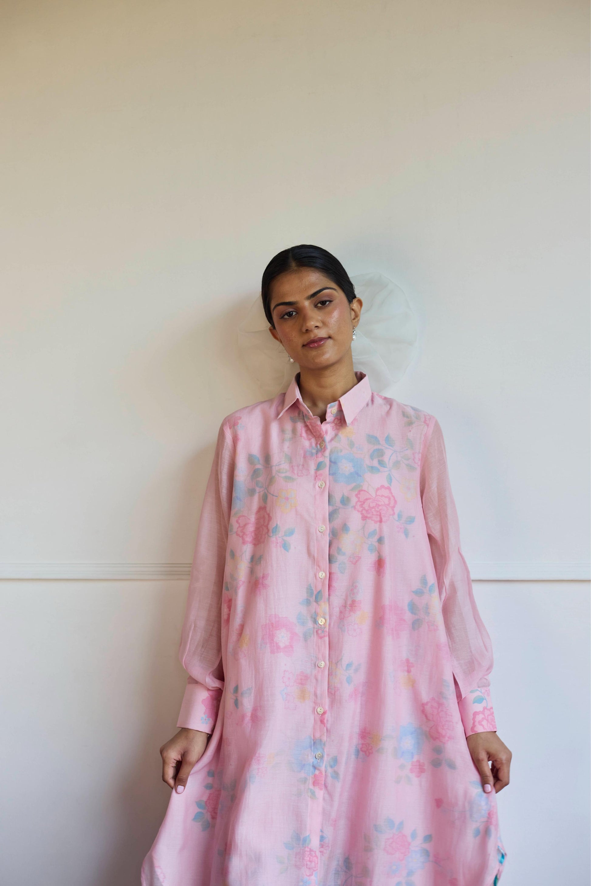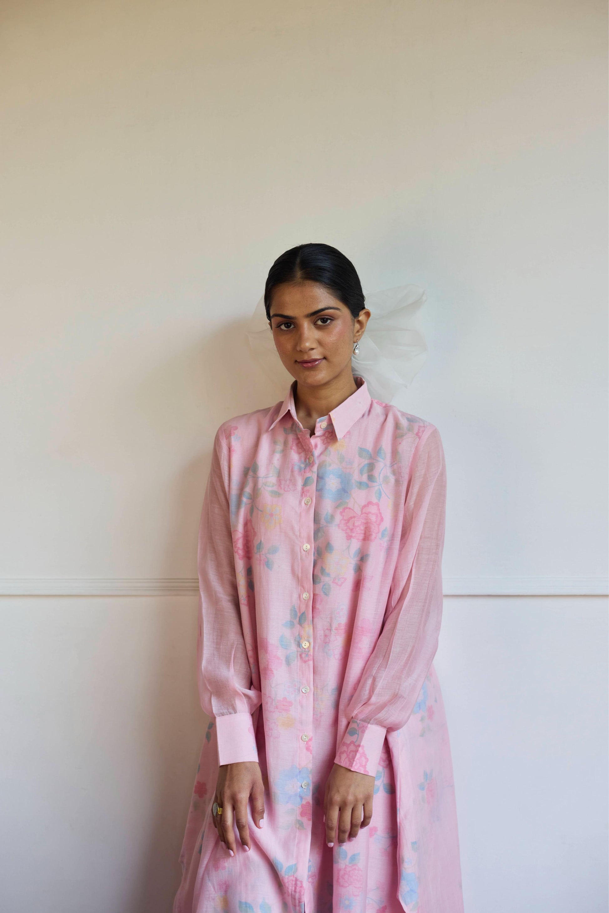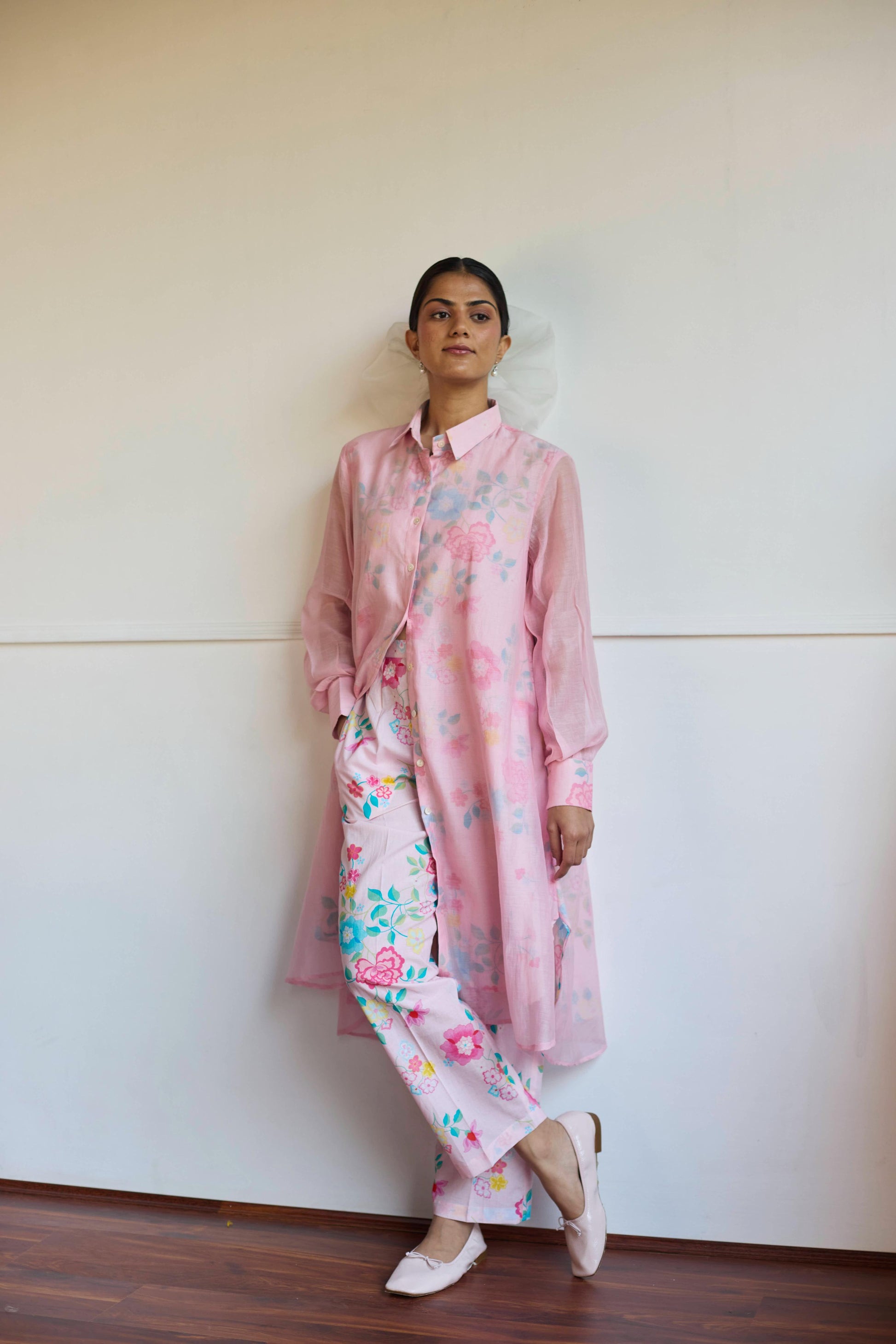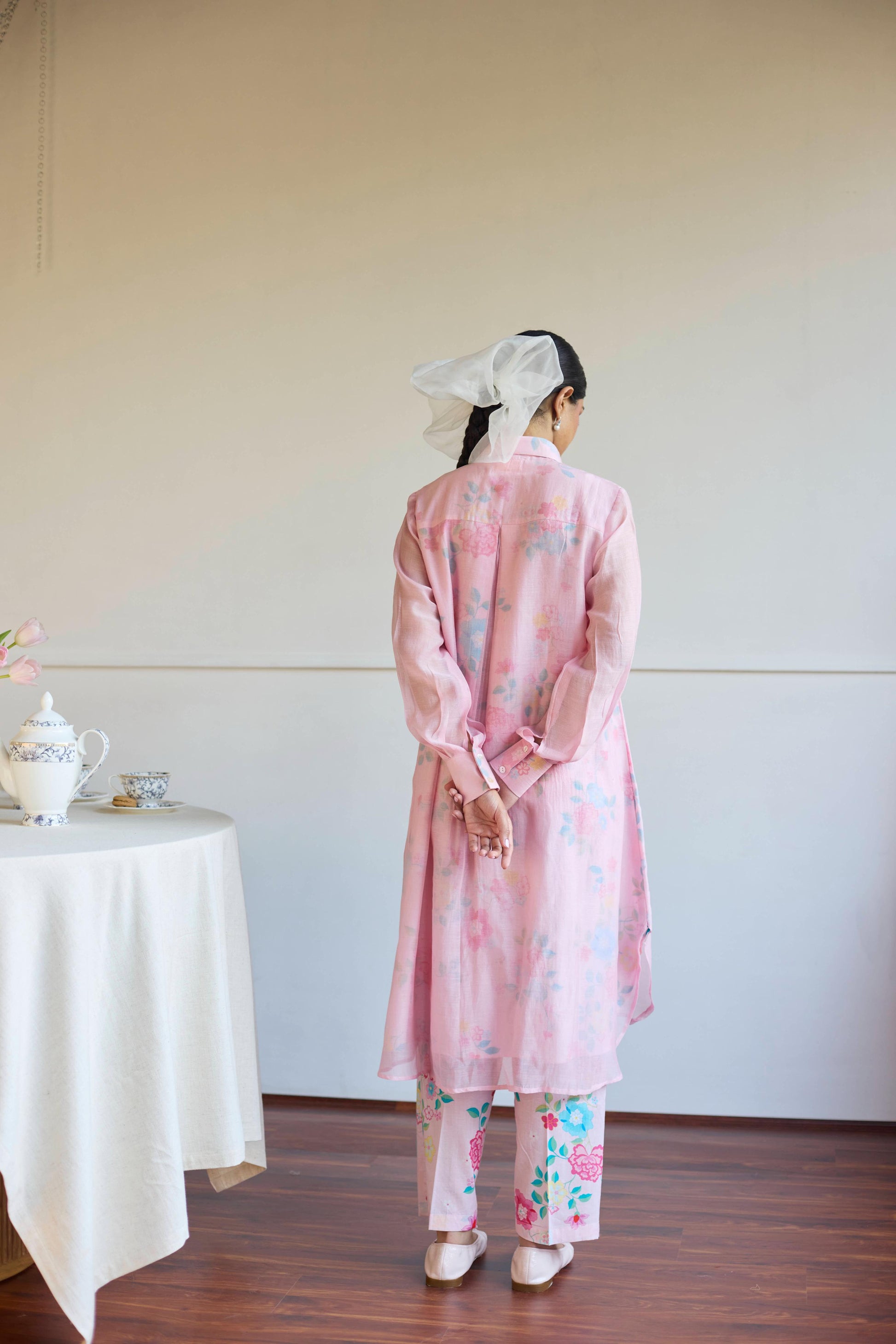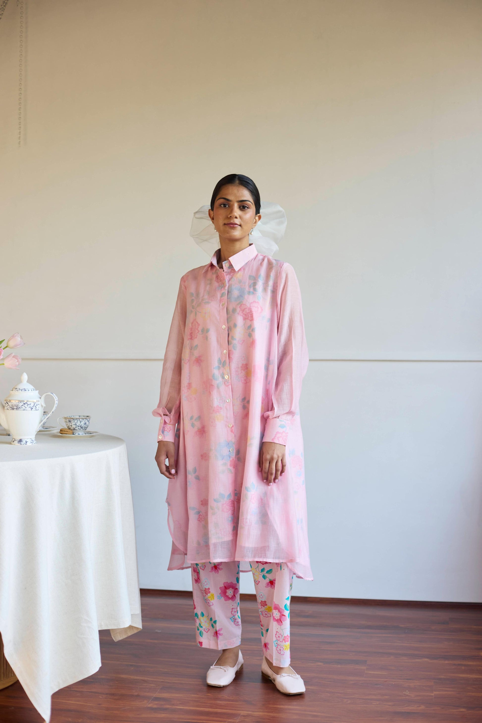 Introducing our handwoven Chanderi co-ord set, A relaxed-fit shirt and trousers in soft pink tones, The collar sharp, the fit effortless, A perfect harmony where comfort is known.