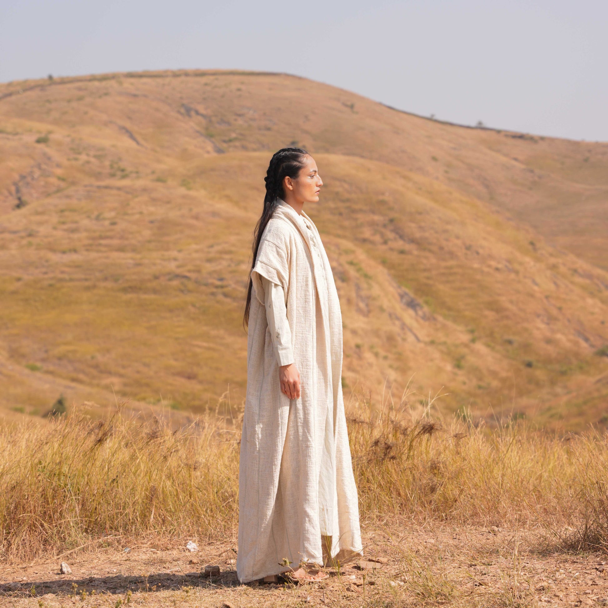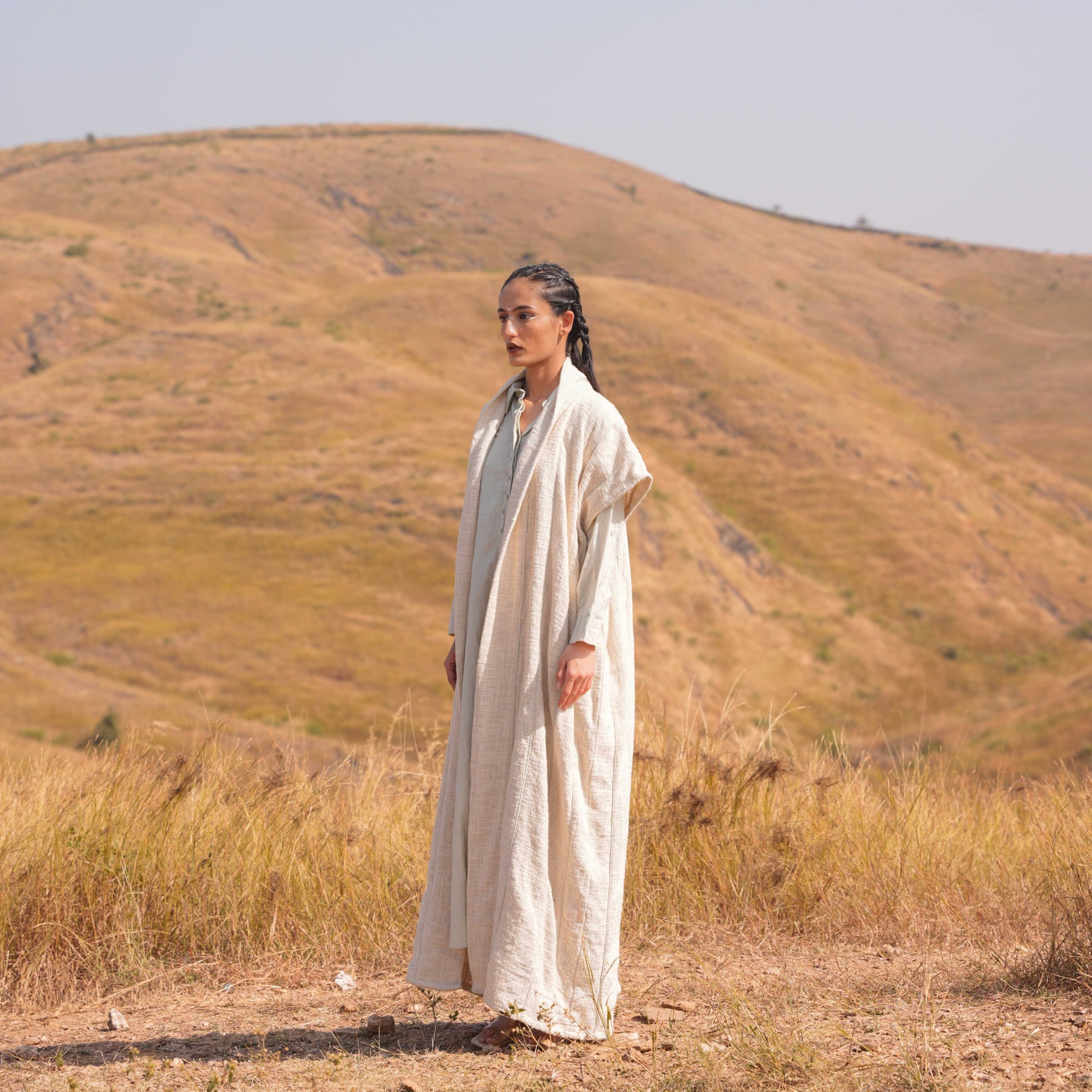 Discover timeless elegance with our Flared Dress and Jacket set. The dress features graceful cape sleeves, floral applique details, a contrasting floral border, and smocked back detailing for a flattering fit. The jacket complements with handmade organza flower accents on the lapelled collar and cuffs, adding whimsical charm and artisanal flair to your ensemble. Perfect for any occasion, this set promises to elevate your style with its sophisticated design and exquisite craftsmanship.