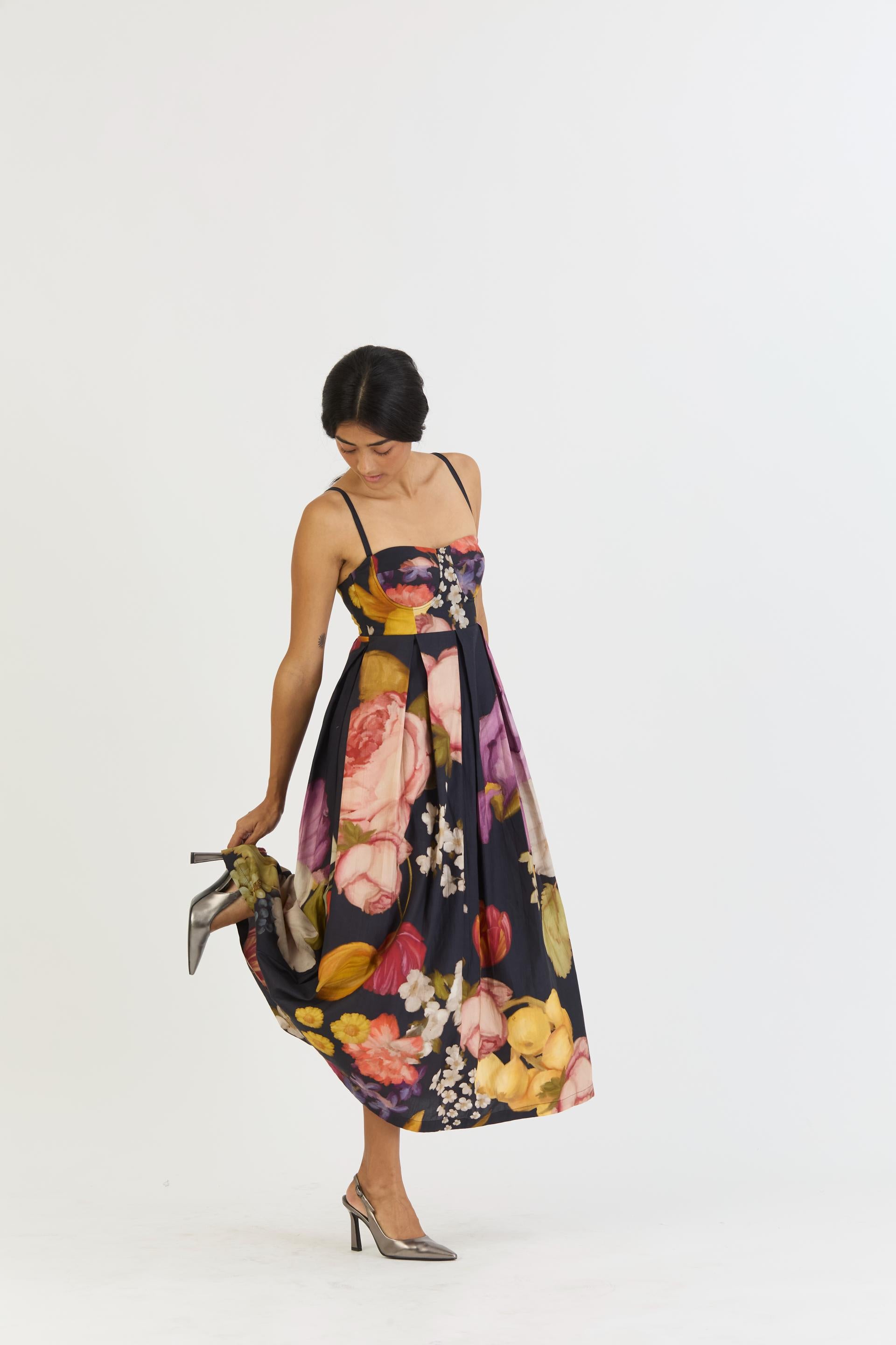 Dress is crafted luxurious cotton satin fabric. Designed with the elasticated back and side zipper ensure a flawless fit every time. The padded bodice offers both comfort and support, while the pleated skirt adds a touch of elegance to the ensemble and perfect for any occasion.