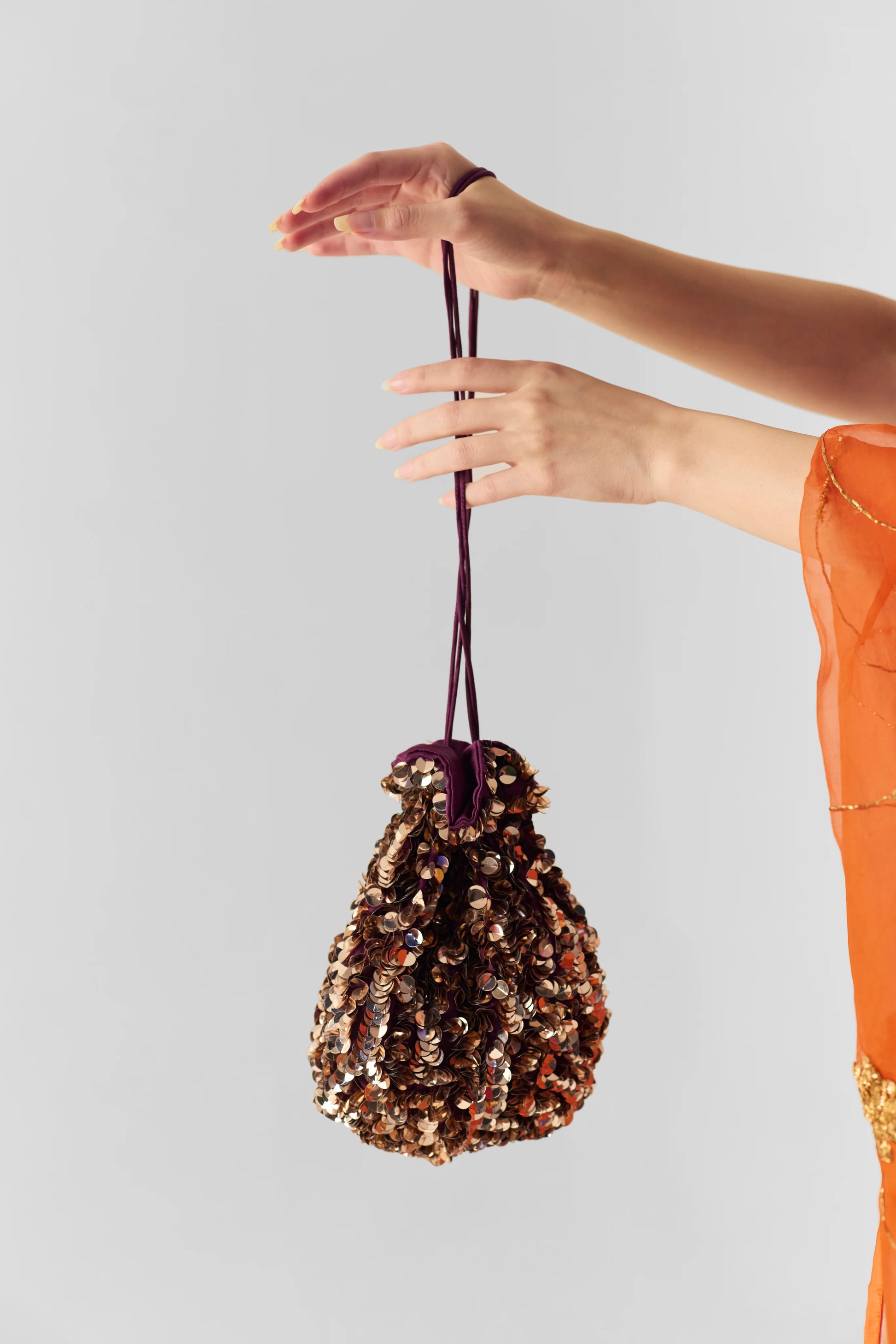 The Potli Sequin Bags are a vibrant addition to any festive wardrobe, meticulously crafted with hand-embroidered sequins for a touch of glamour.