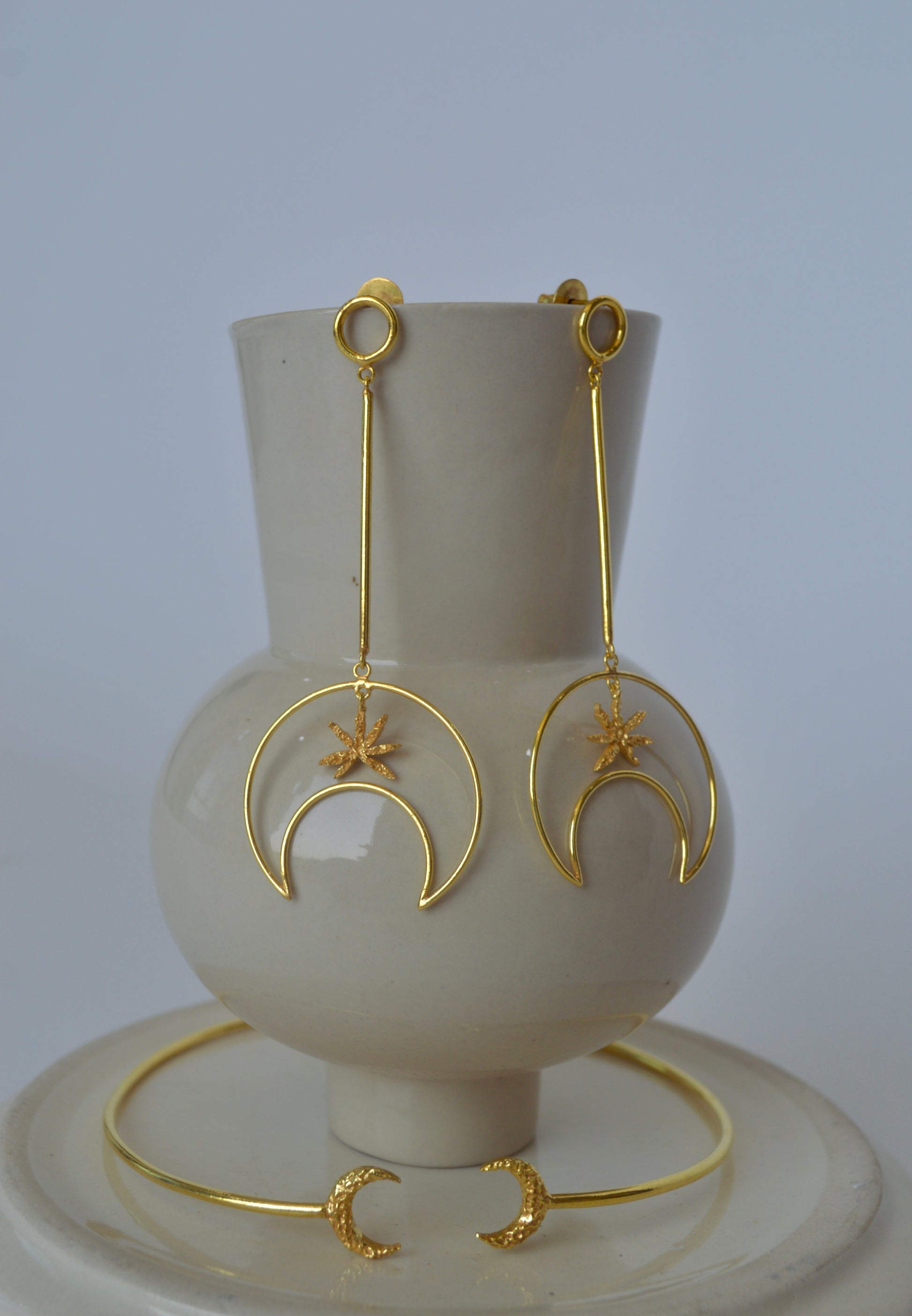This statement moon open collar neckpiece is minimal and stylish. The simplicity of the piece makes it good summer accessory.