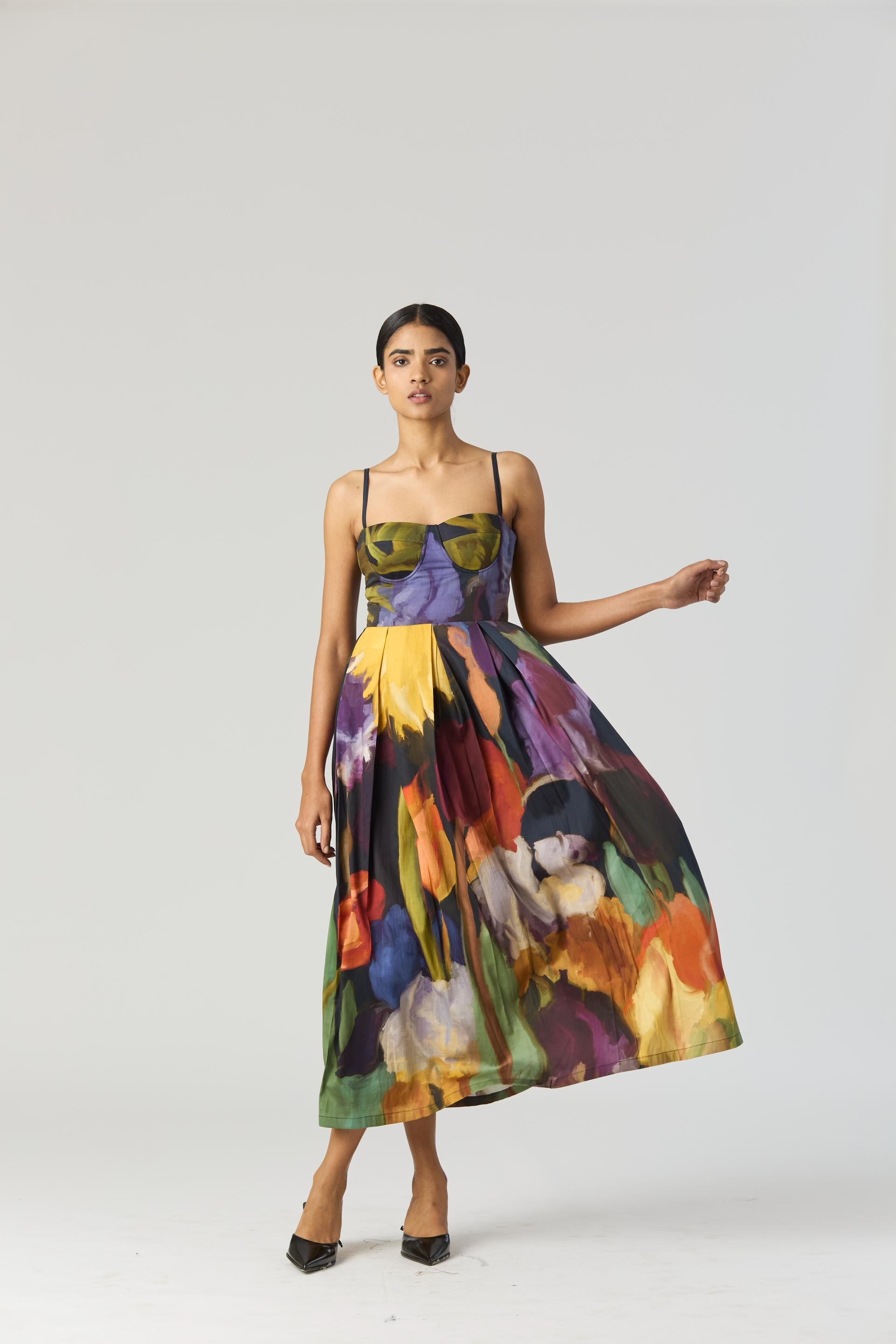 added convenience, while the elasticated back and side zipper ensure a flawless fit every time. The padded bodice offers both comfort and support, while the pleated skirt adds a touch of elegance to your ensemble and perfect for any occasion.