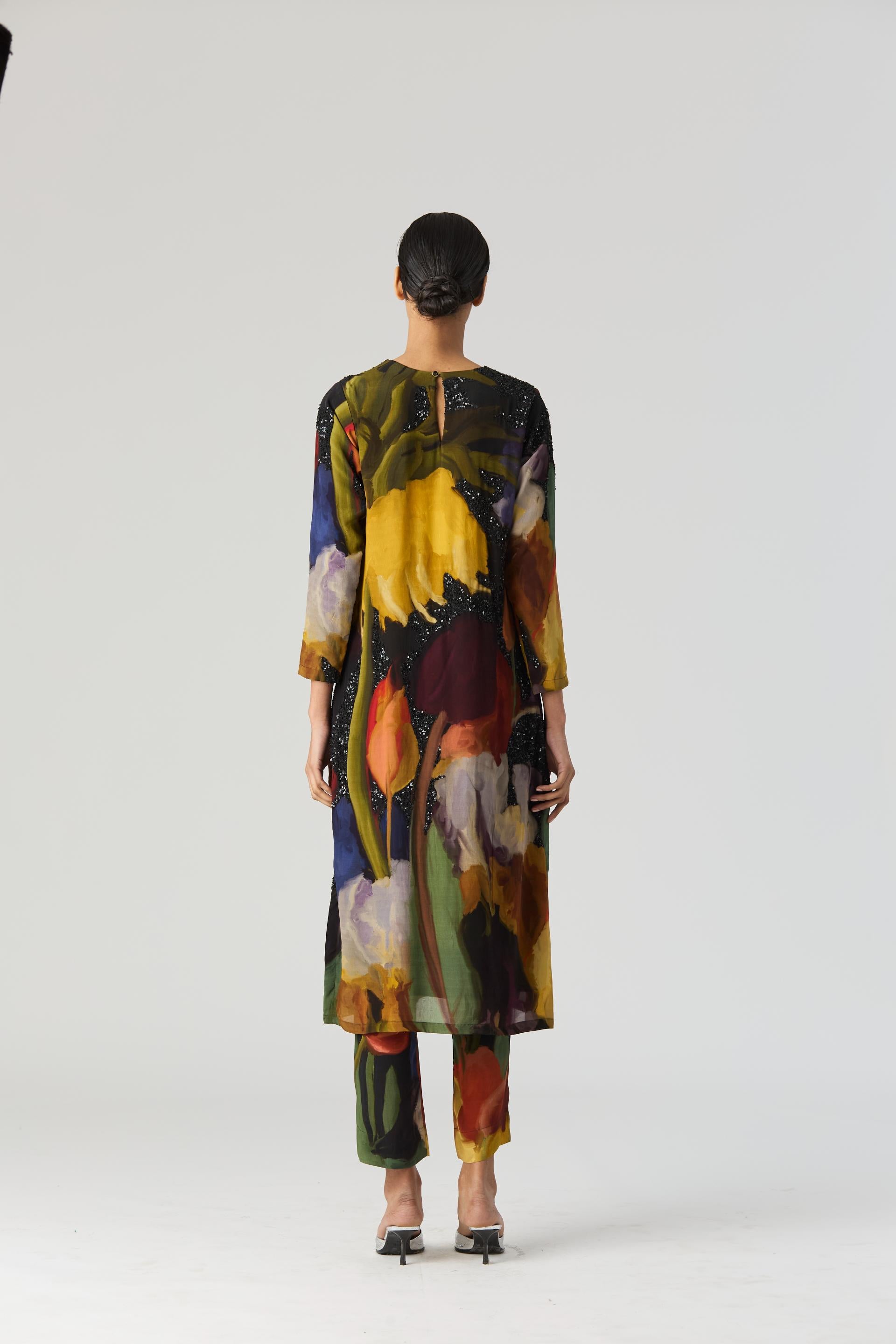 The Kurta set is crafted in the Ivy carefully printed on crepe.