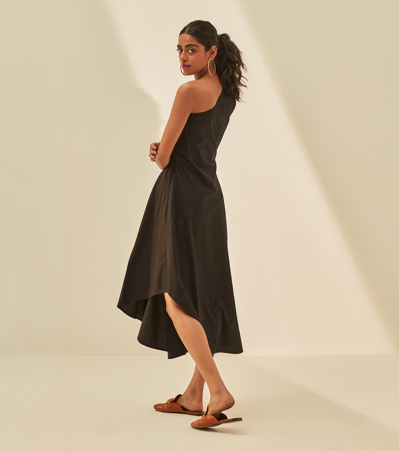 Crafted for a little fun, Jolene one shoulder dress is the perfect blend of charm and simplicity. crafted in poplin. Handcrafted in India.
