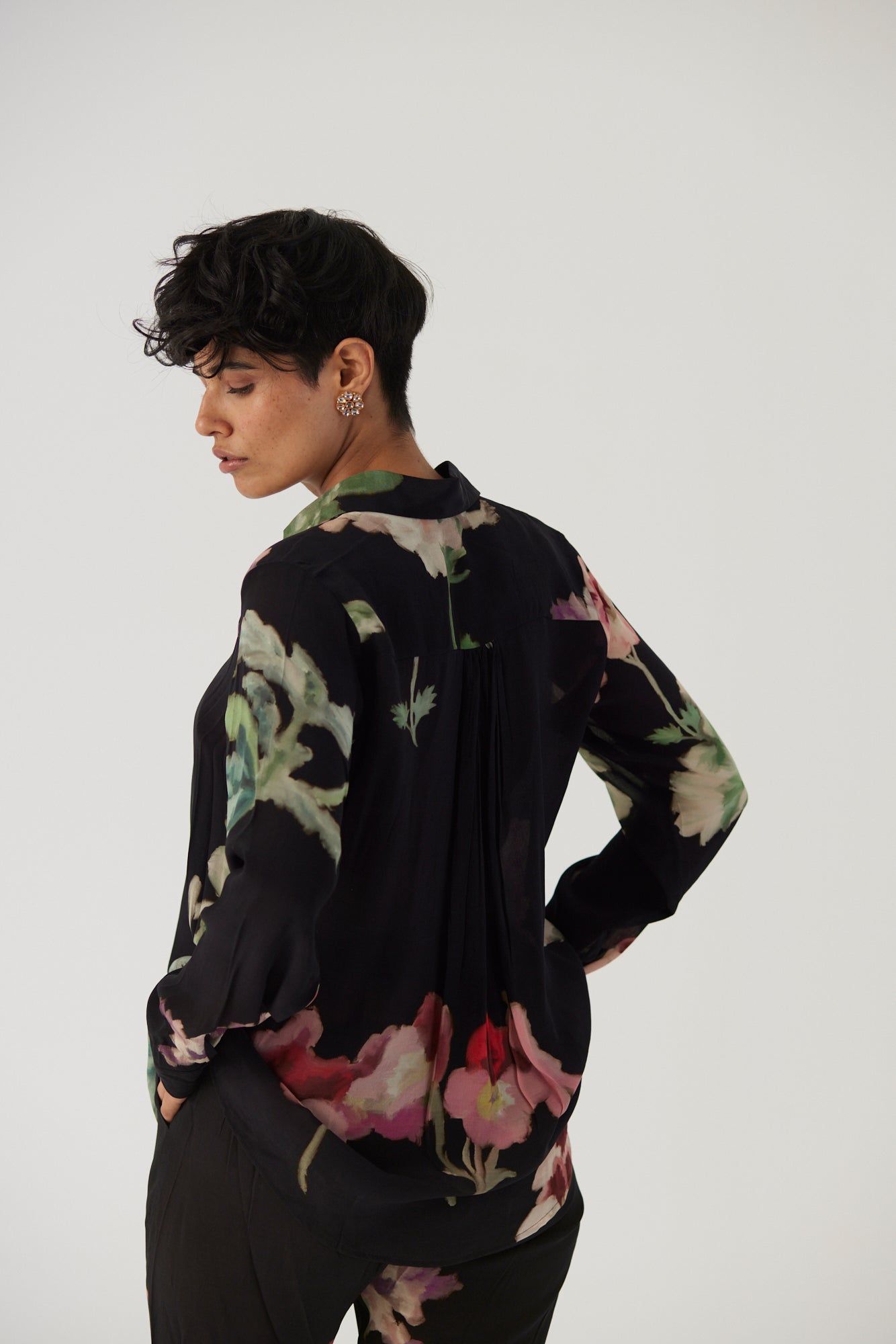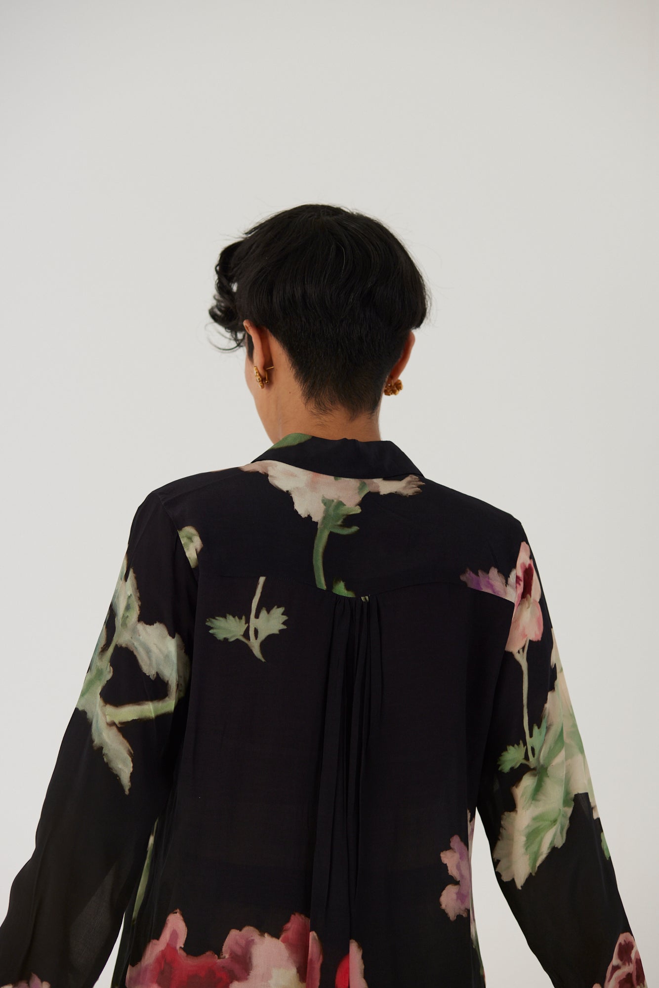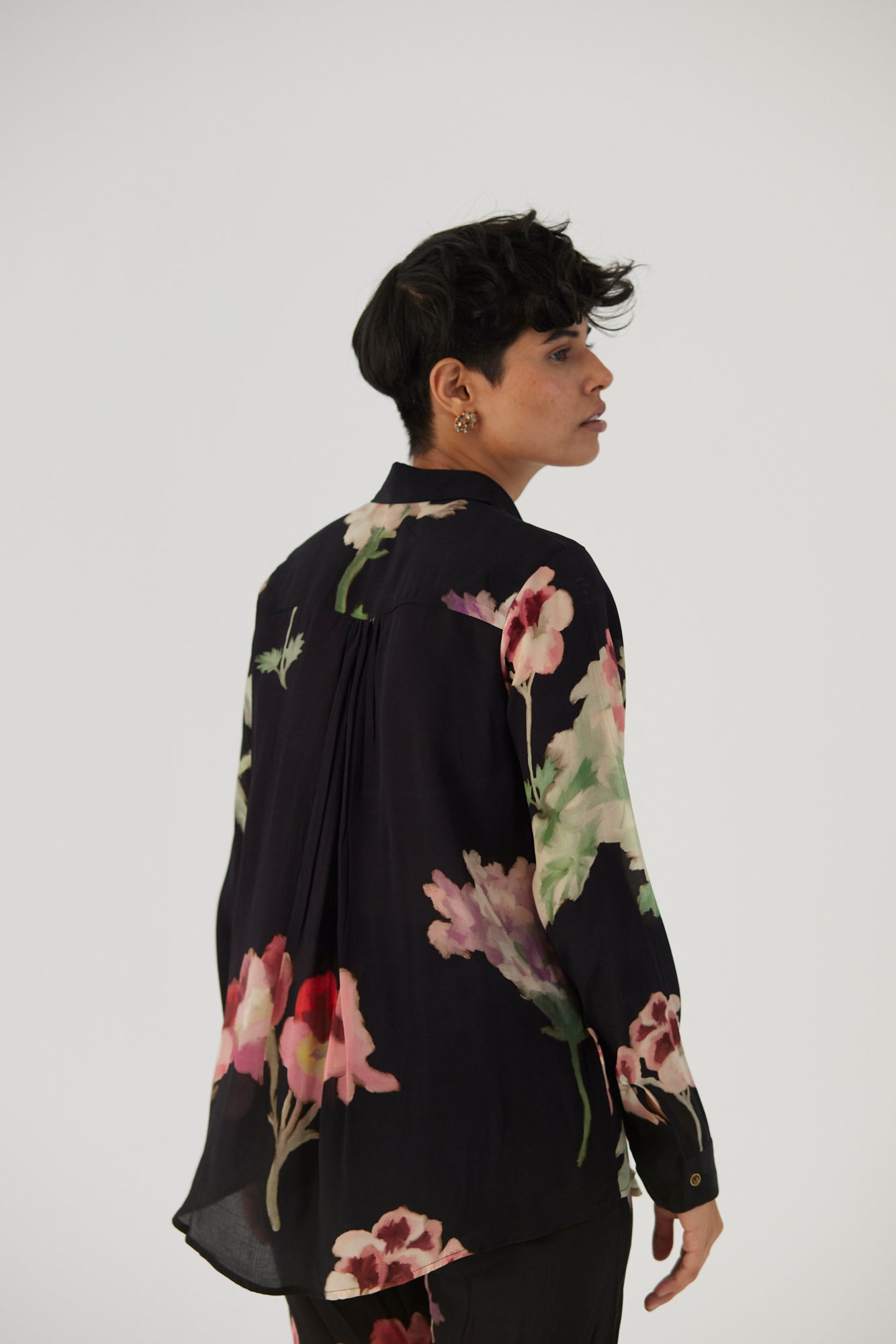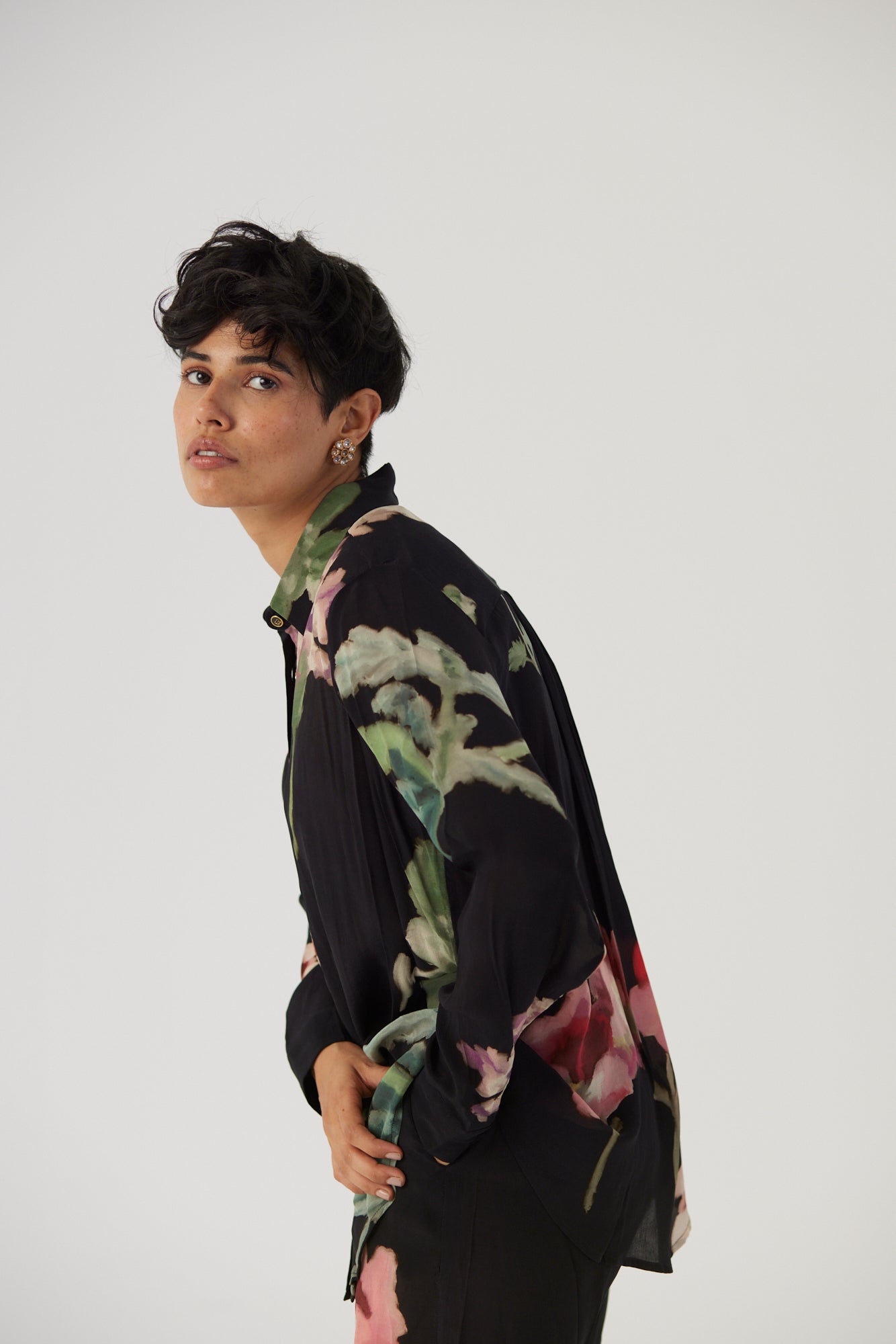 The print features hand drawn botanical motifs in a black base. This set is crafted in the Juliet print carefully printed on crepe featuring a set of shirt and pants.