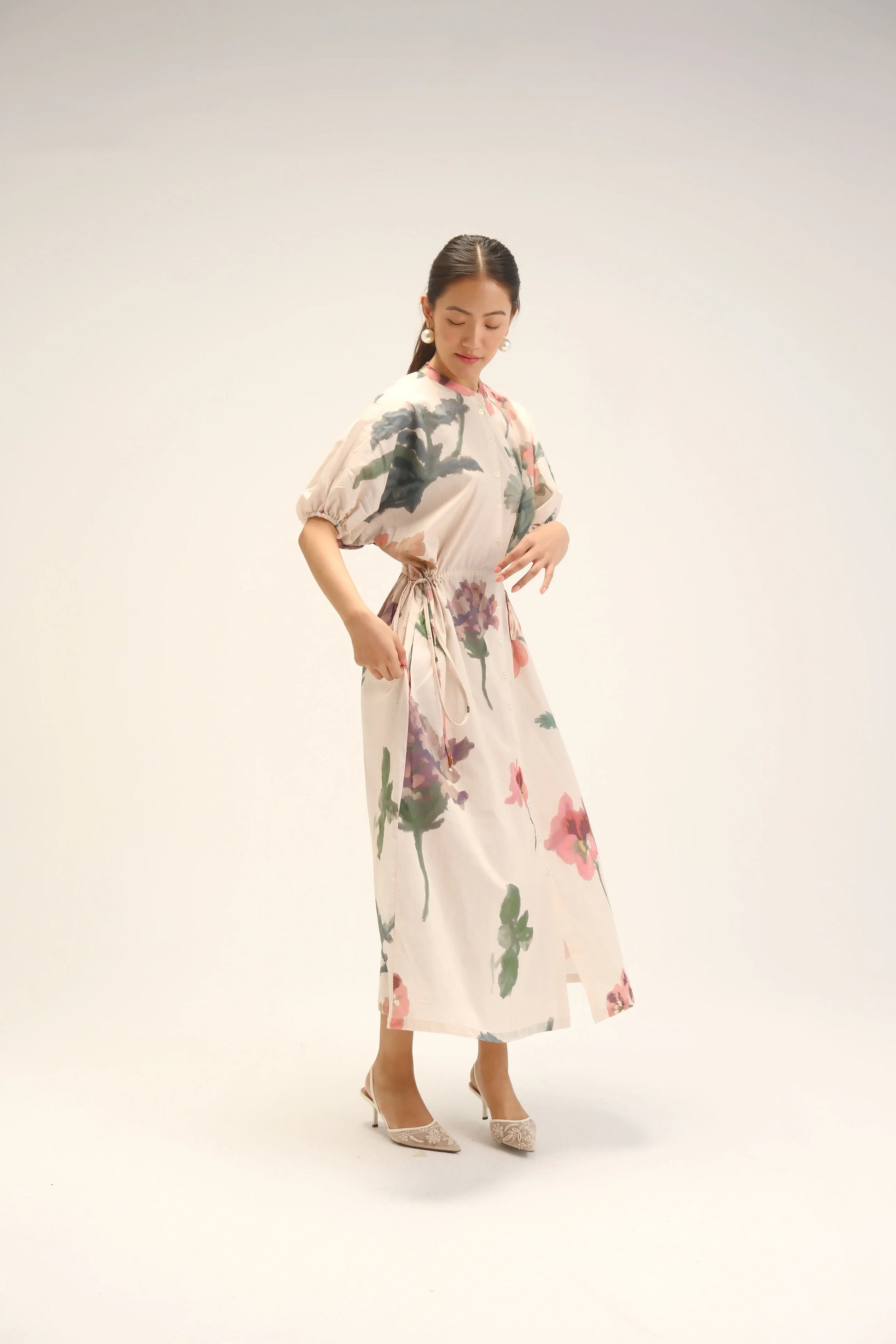 Immerse yourself in understated elegance with our Floral Watercolour Co-ord Set. The set features a soothing ivory base adorned with delicate, hand-painted floral motifs in soft hues of pink, green, and blue. The print mimics the effect of watercolor brushstrokes, lending the outfit a dreamy, artistic appeal.