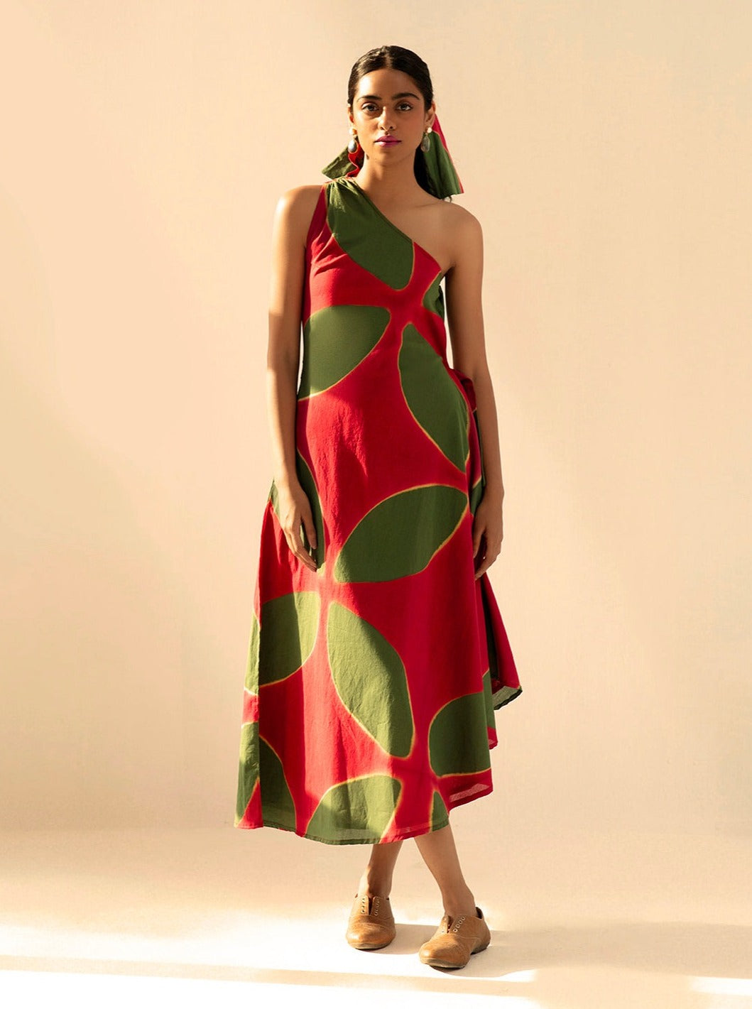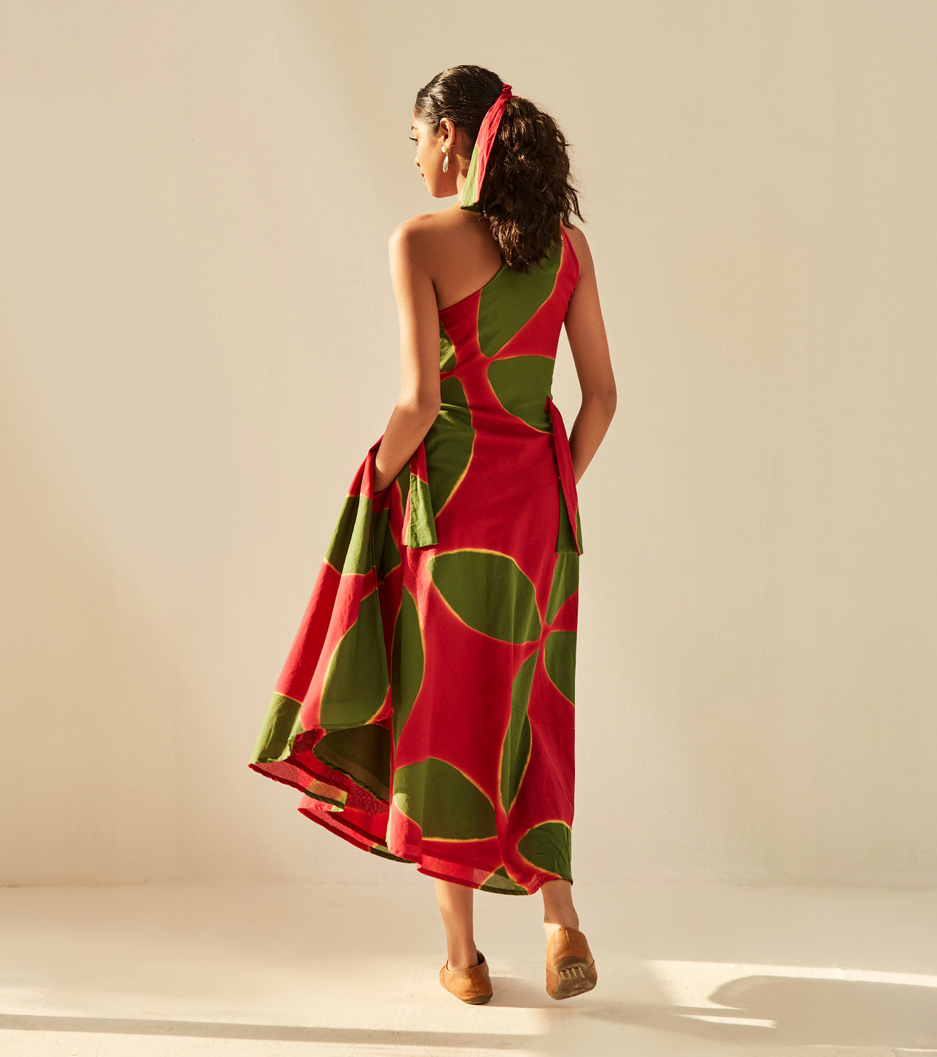 Imbued with vibrance and positivity, This one shoulder dress is a charming translation of the season in our signature shibori dyed soft cotton mul fabric.Handcrafted in India. Side seam pockets. Fully lined.