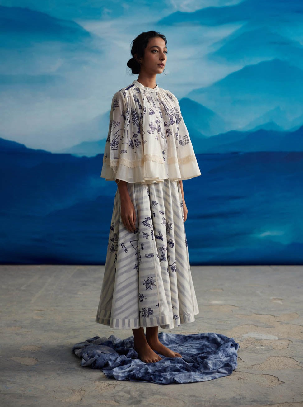 Featuring soft pleats gracefully descending the shoulders, our feminine and playful gathered shirt is a versatile piece that seamlessly moves from casual street strolls to office chic. With a laid-back yet refined aura, this blouse is a timeless beauty to cherish. The dreamy design is enhanced with intricate lace accents and hand-screen printed motifs, injecting a daily dose of allure and sophistication. Combining comfort and style, this shirt is a charming choice for those who appreciate a touch of everyday glamour, whether wowing the office or wandering through the streets.