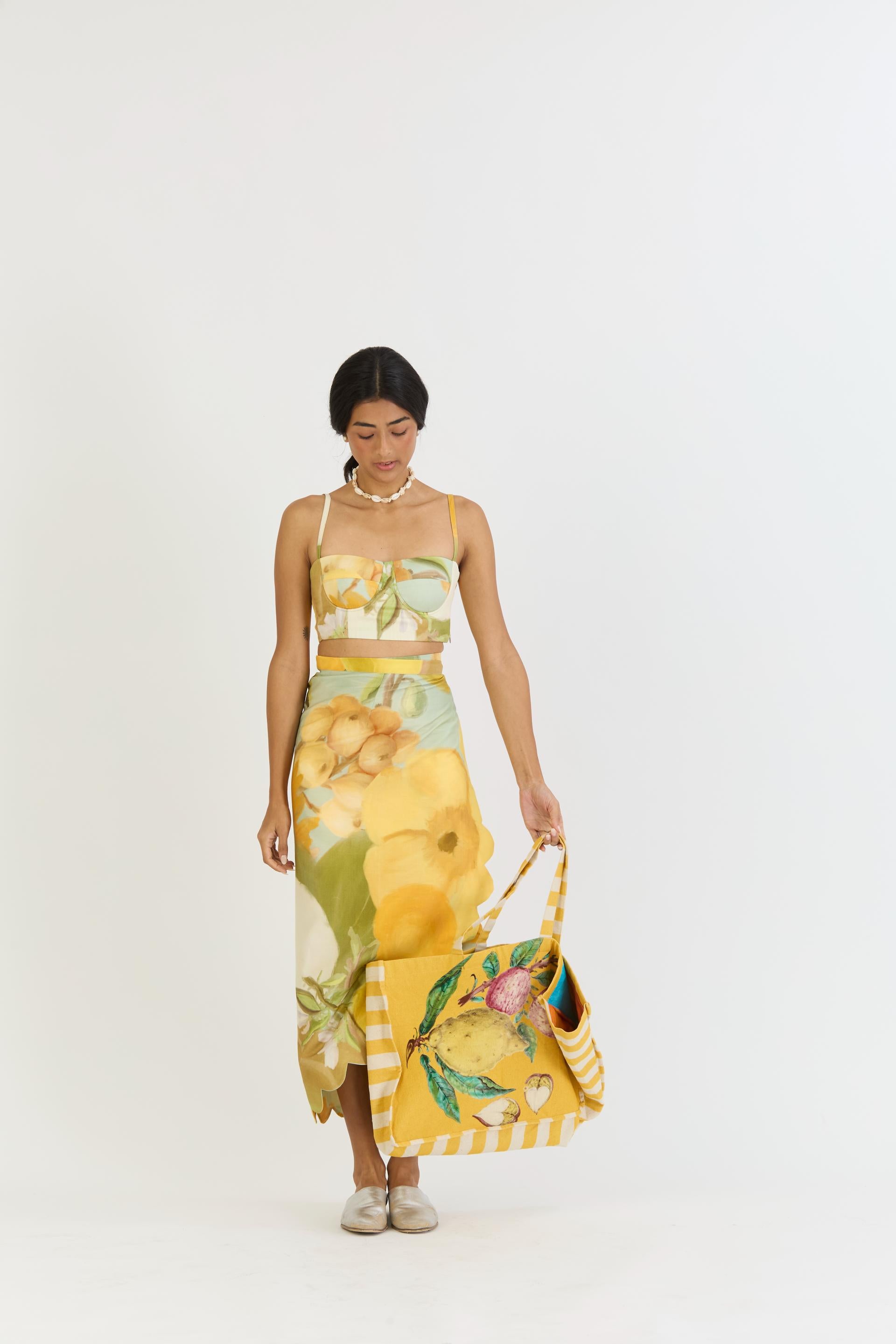 The set boasts a hand-drawn print of large, elegant lemons and flowers set against a refreshing mint color base. This exquisite design offers a blend of sophistication and comfort.