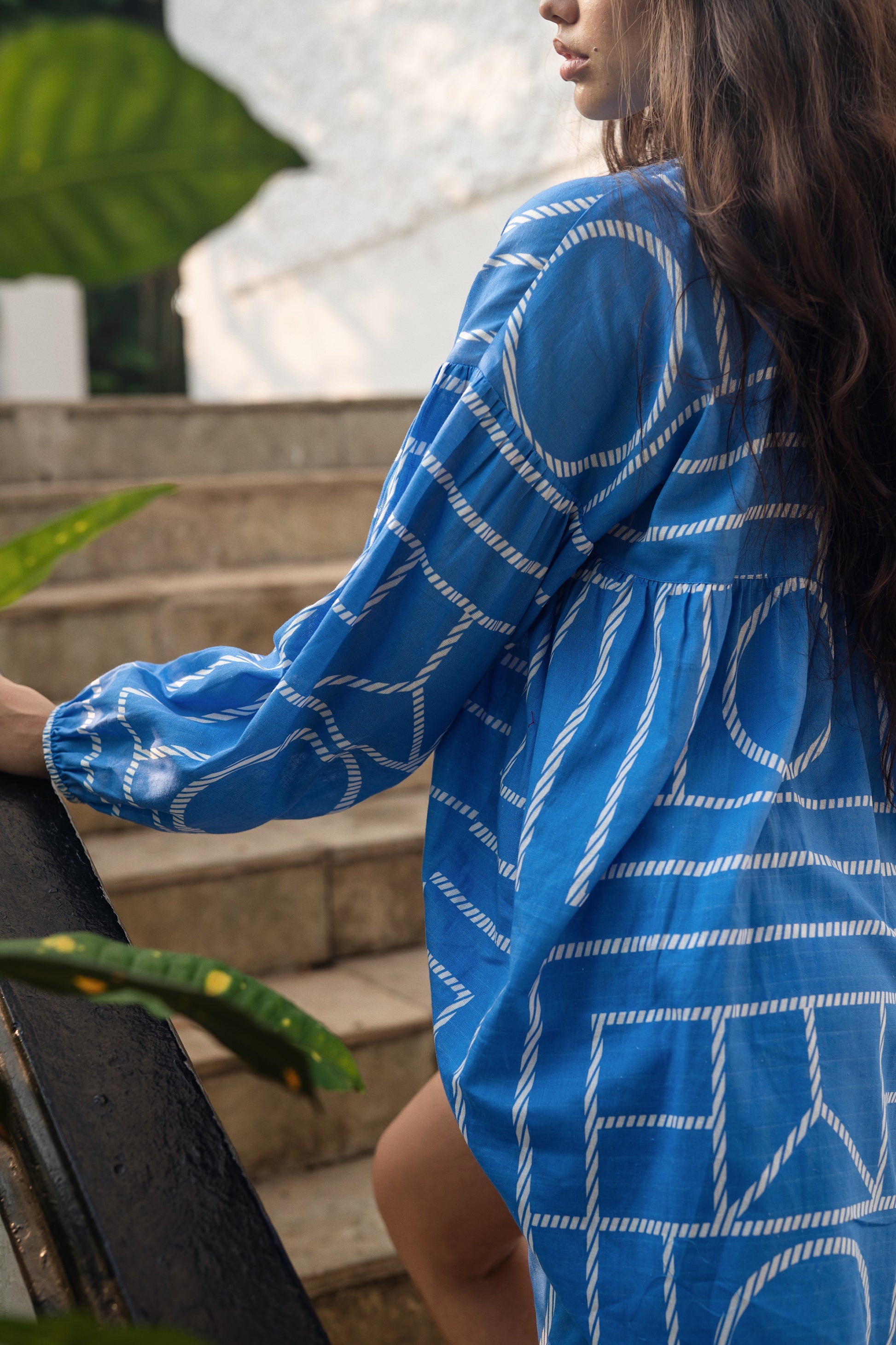 Lolo set is made from our cotton linen fabrication in geometric print. It has a relaxed fit gathered top paired with shorts.