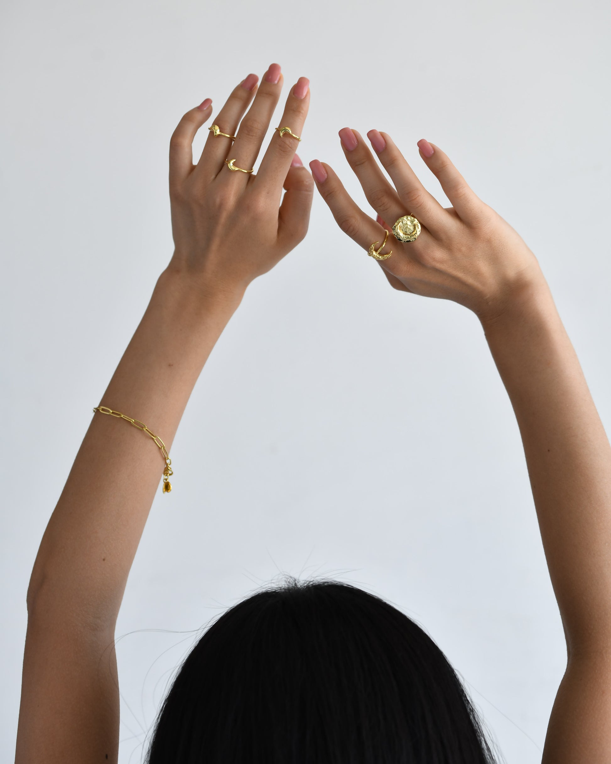 The golden textured statement moon ring is enough to lift up your spirits and take you to the dreamy world. Pair it up with casual as well as formal wear.