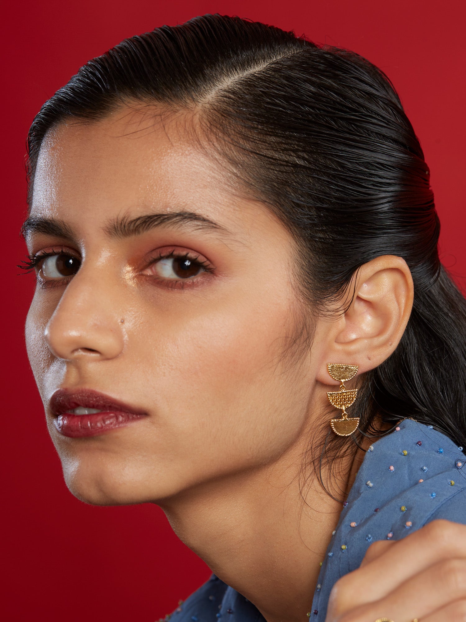 A cascade of alternate filigree and textured metal half-moons, the 'Many moons' earrings dance on the ears. A pinch of drama to the everyday.