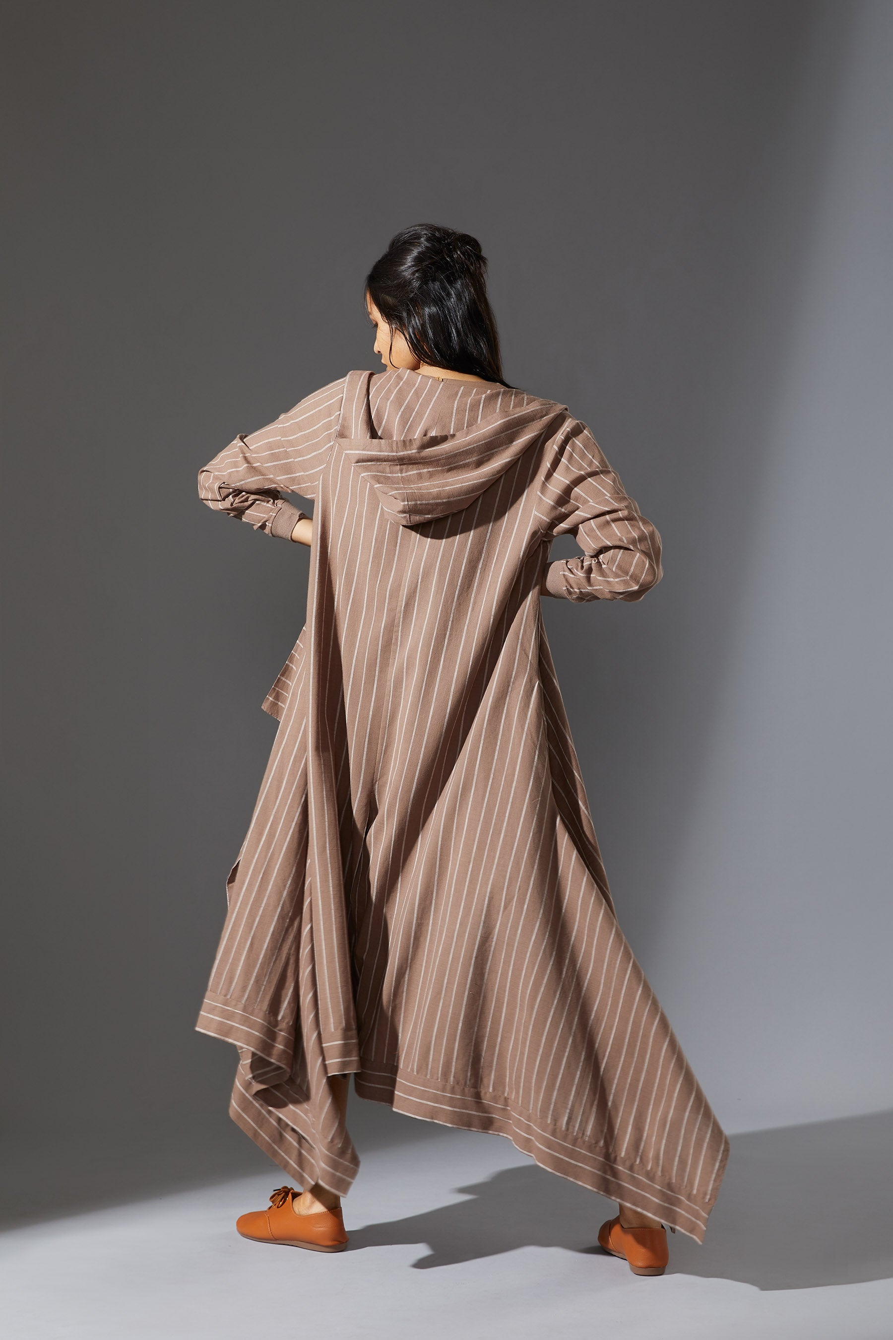 A new version of our famous koza jacket !! Styled with a hoody at the back and ribbed cuff at the sleeves this jacket can be teamed with our vita aakaar to complete the look !!
