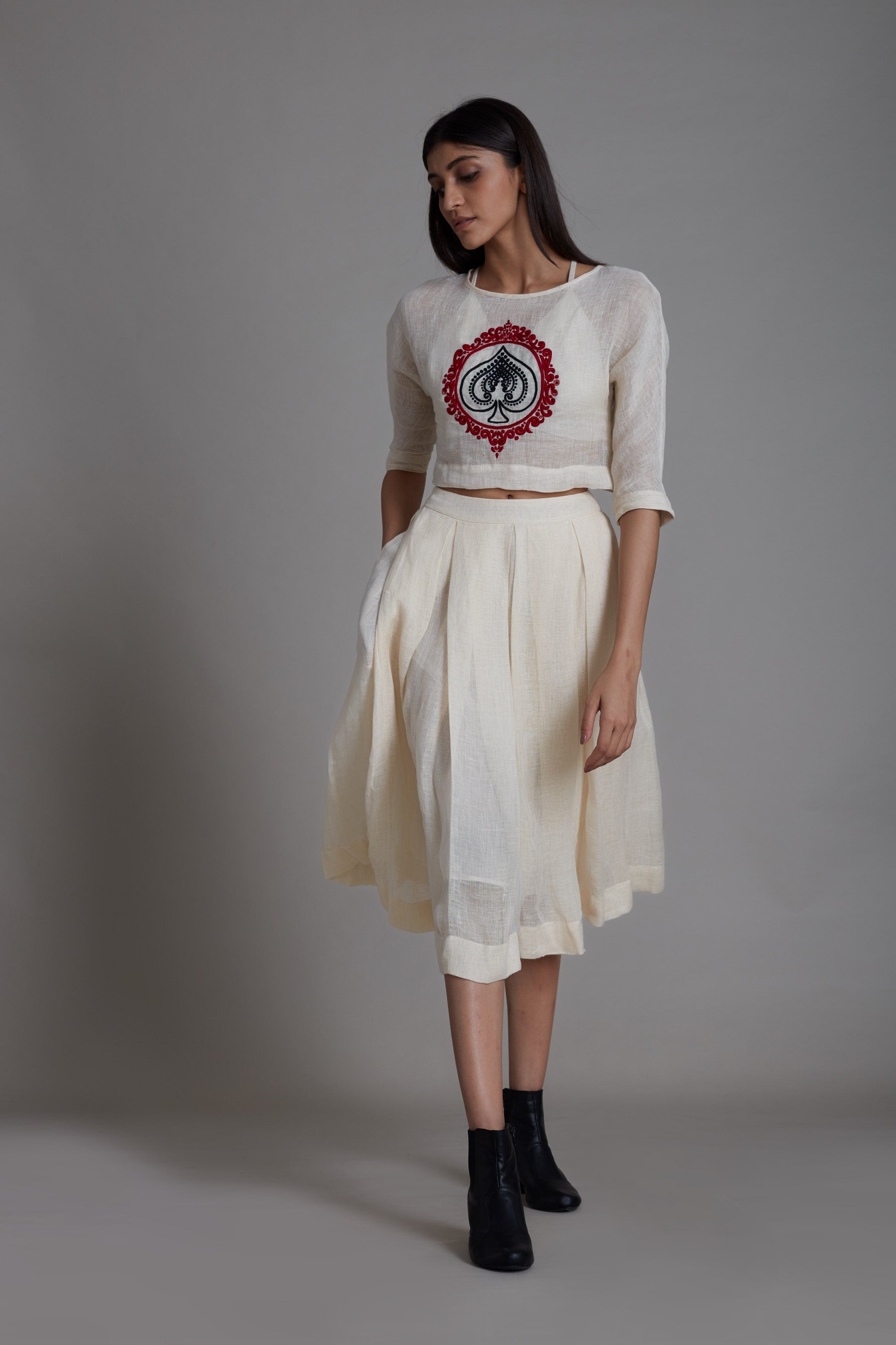 Contemporize your festive closet with the solo spade linen skirt. Style this piece with the solo spade top from our collection. This skirt is pure linen and completely lined in cotton mul.