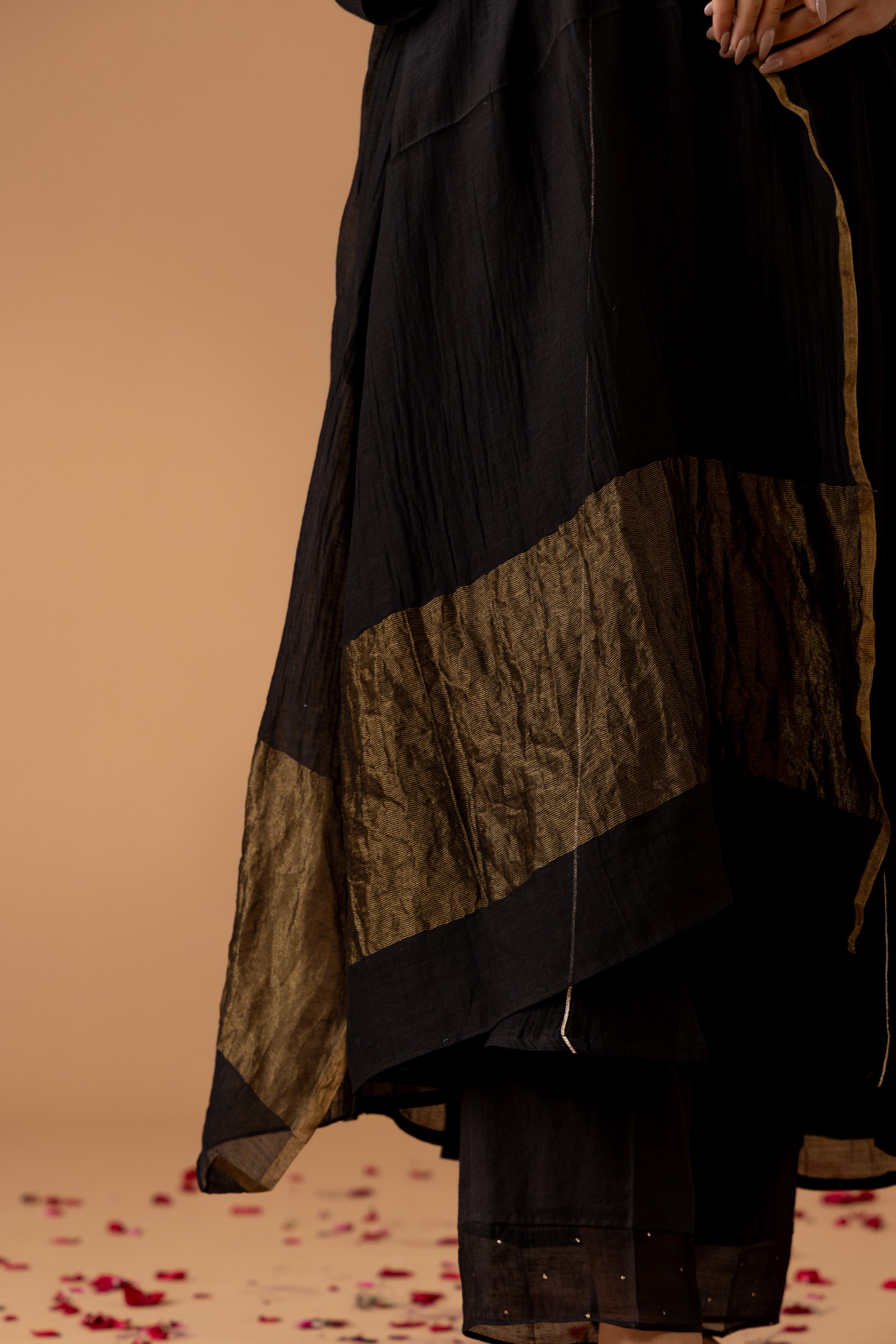 Featuring Handwoven Chanderi Gather Kurta Set With Embellishment Of Mukesh And Gotta Detailing On Yoke And Gather On Sides Paired With Our Signature Handwoven Chanderi Dupatta With Zari Weaved On Sides And Cotton Pants With Mukesh Detailing On Hemline