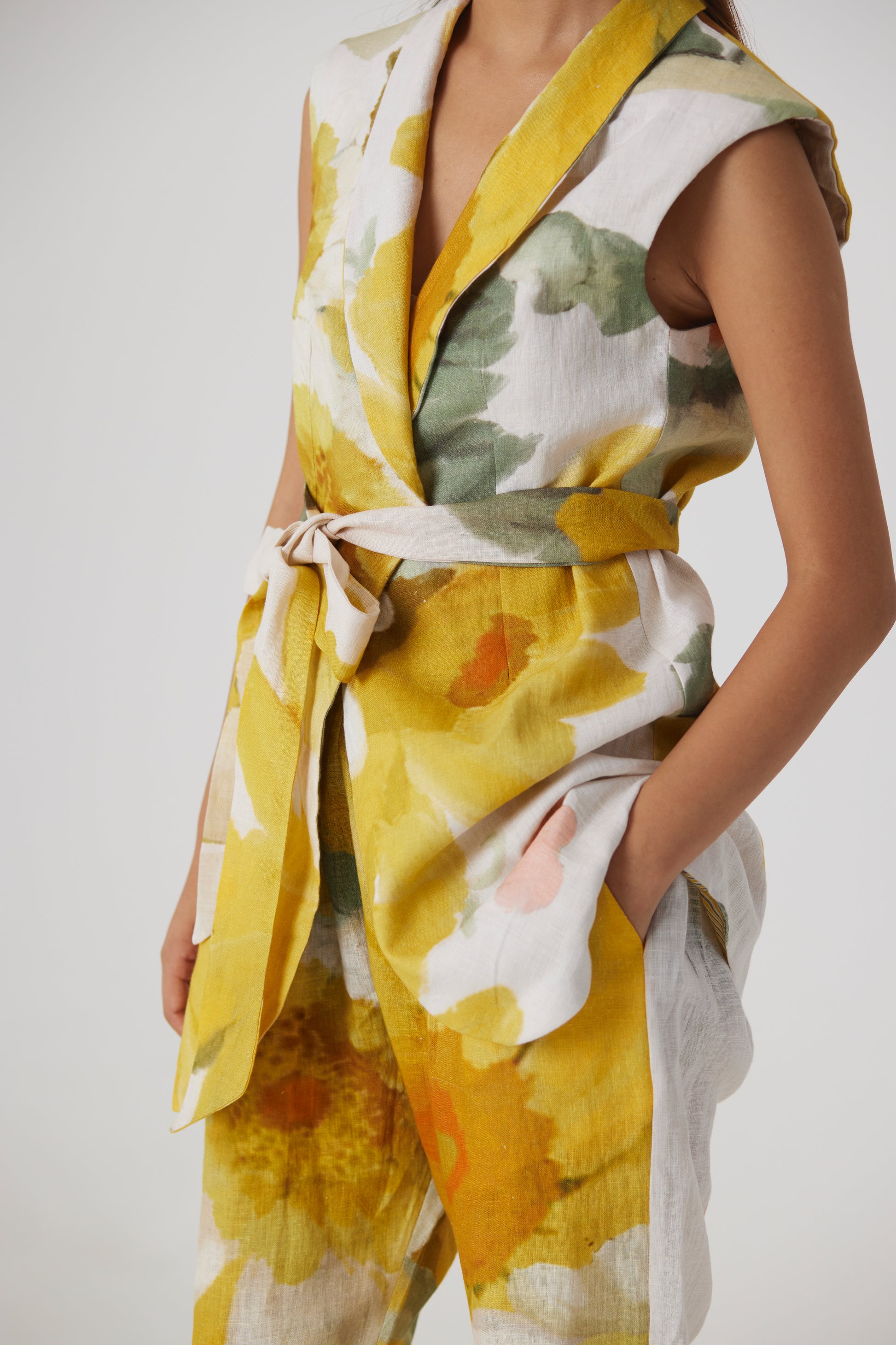 Bask in the radiance of nature with our Linen Jacket Set, graced by oversized hand-drawn sunflower motifs. Embrace the sun's warmth and style in this stunning and comfortable piece.