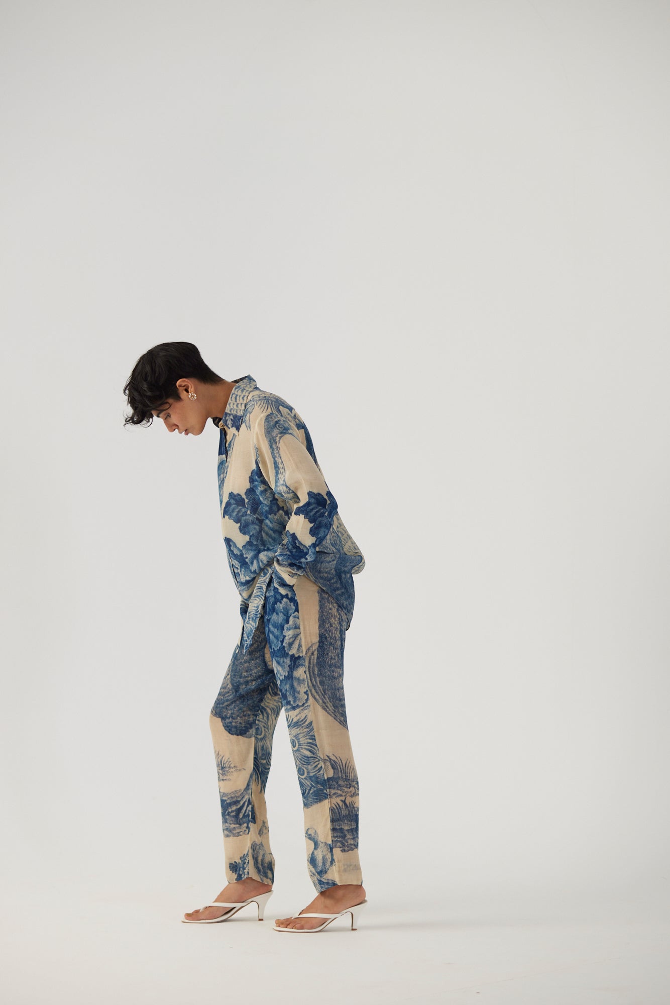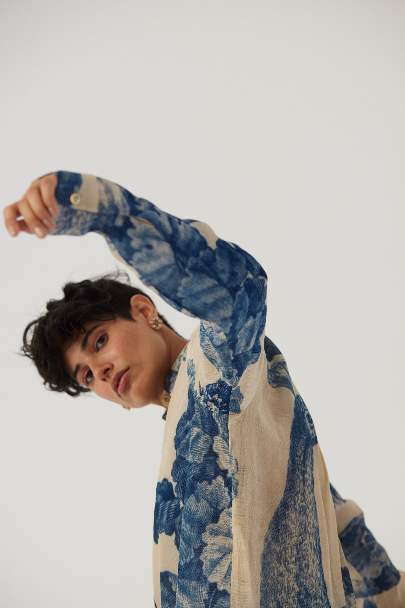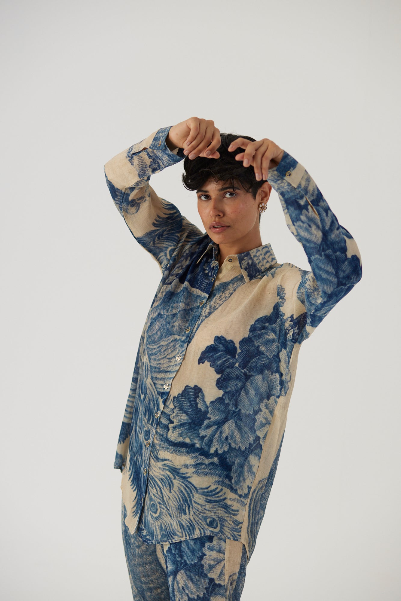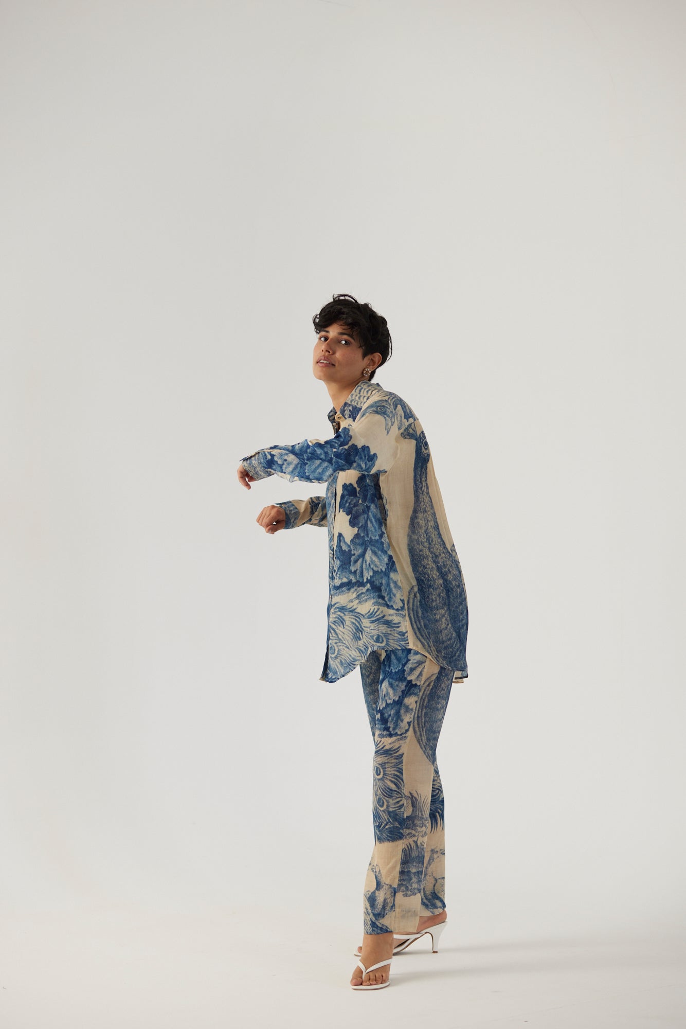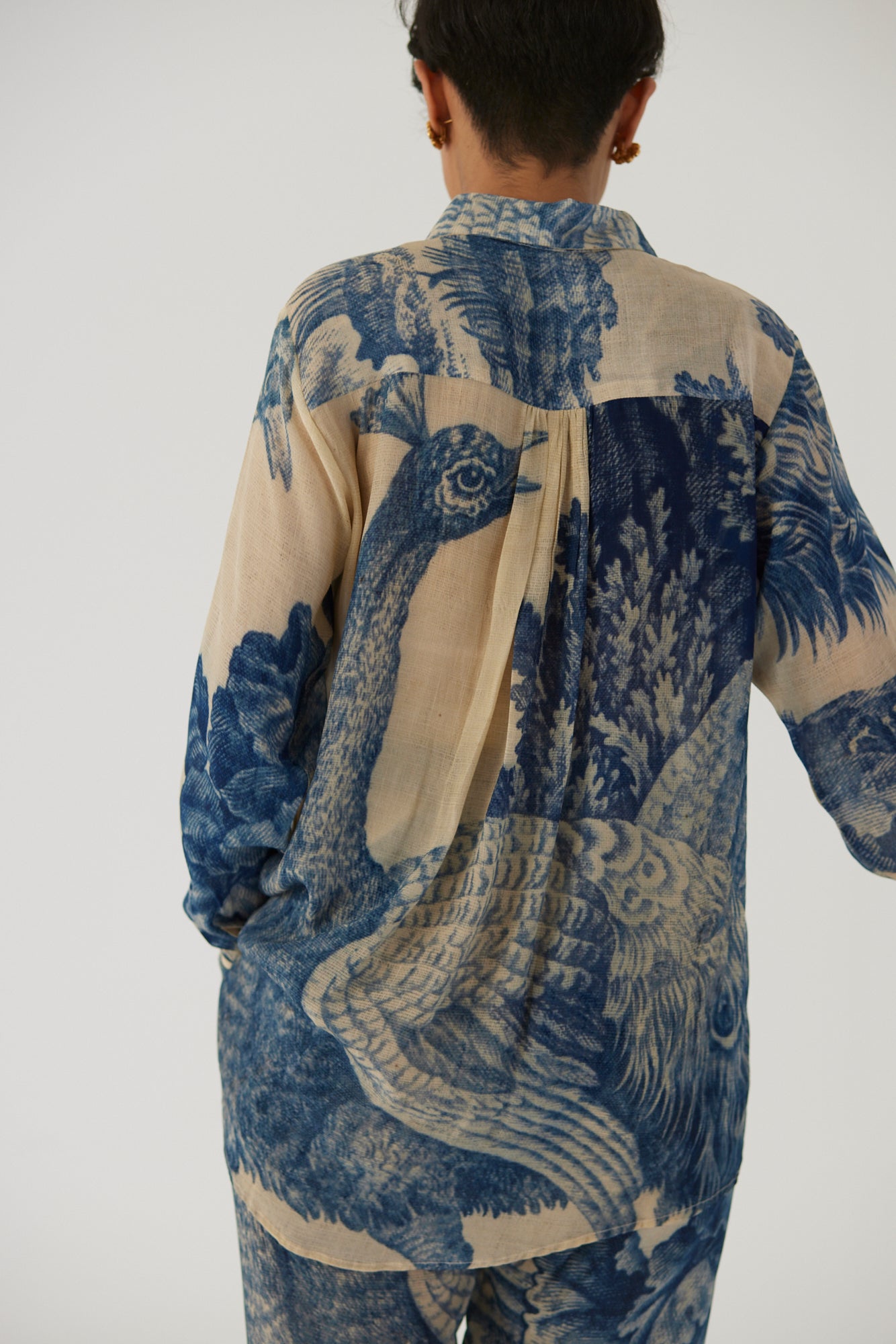 This print features a MOR(peacock) with intricate details and bold lines in the indigo colour.