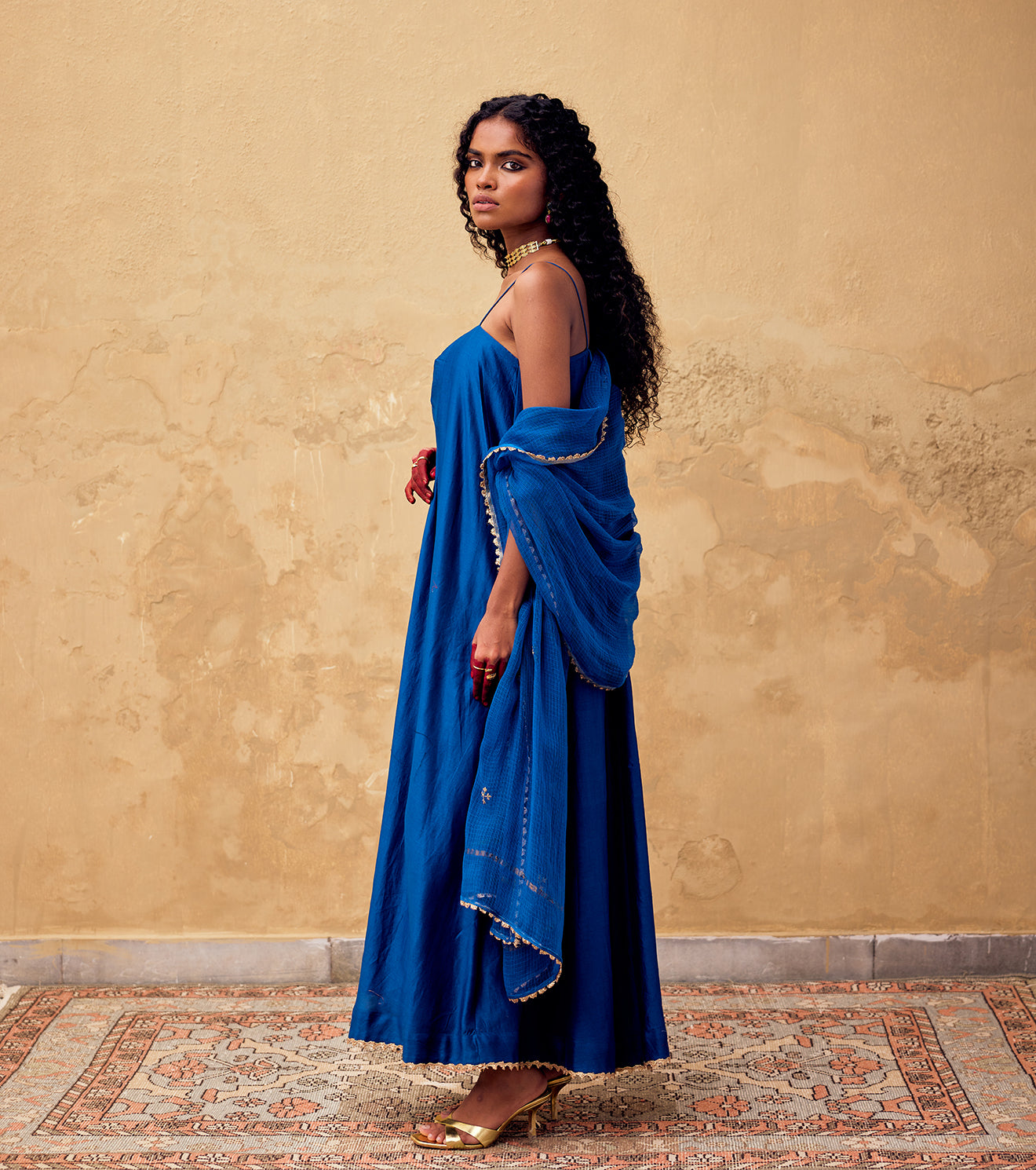An embroidered Kota doria dupatta composed in cotton and embellished with gota lace.
