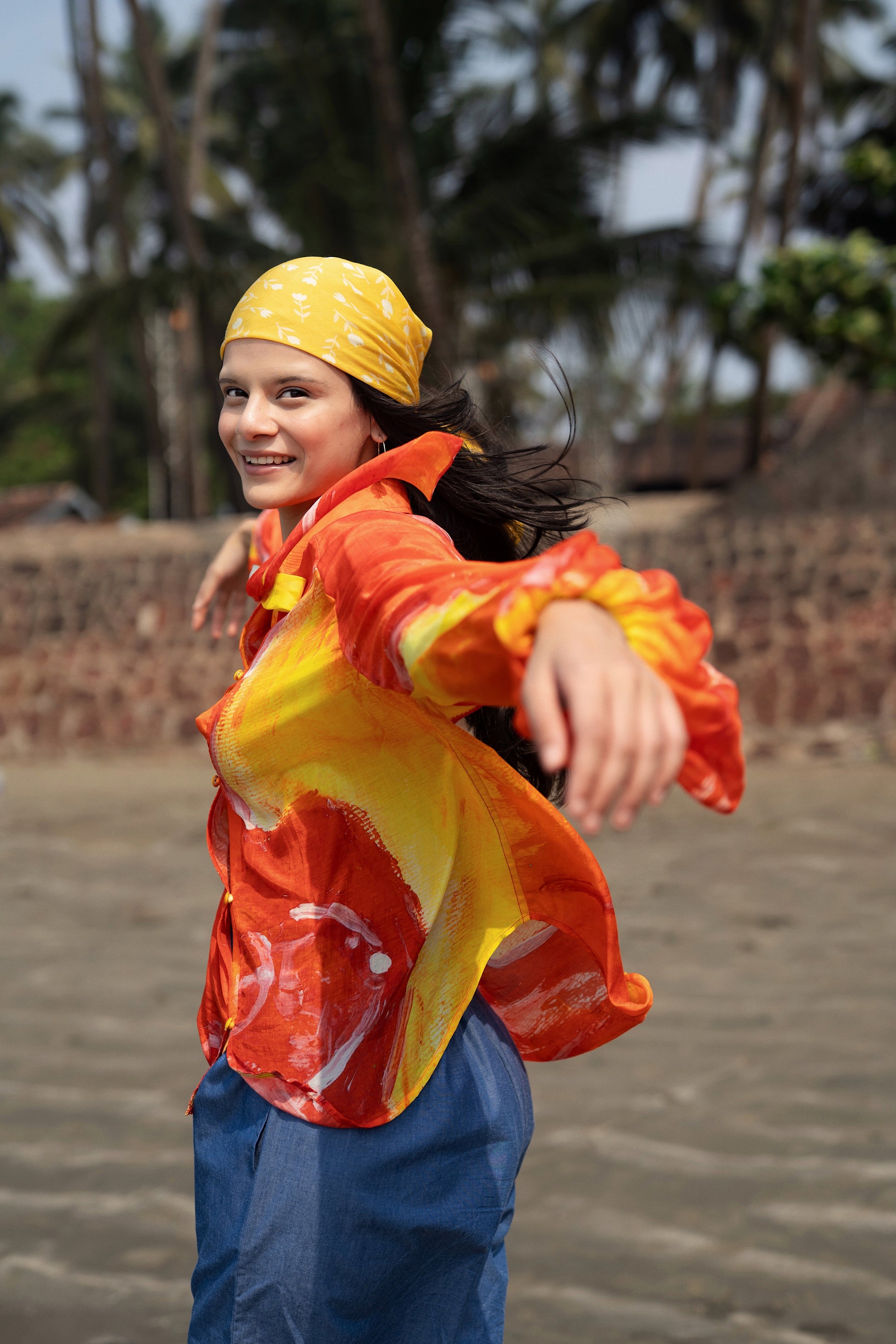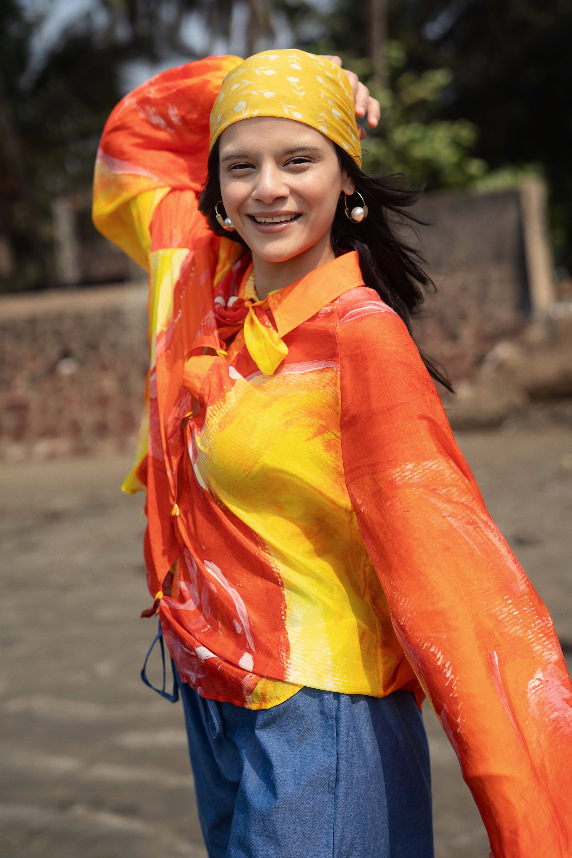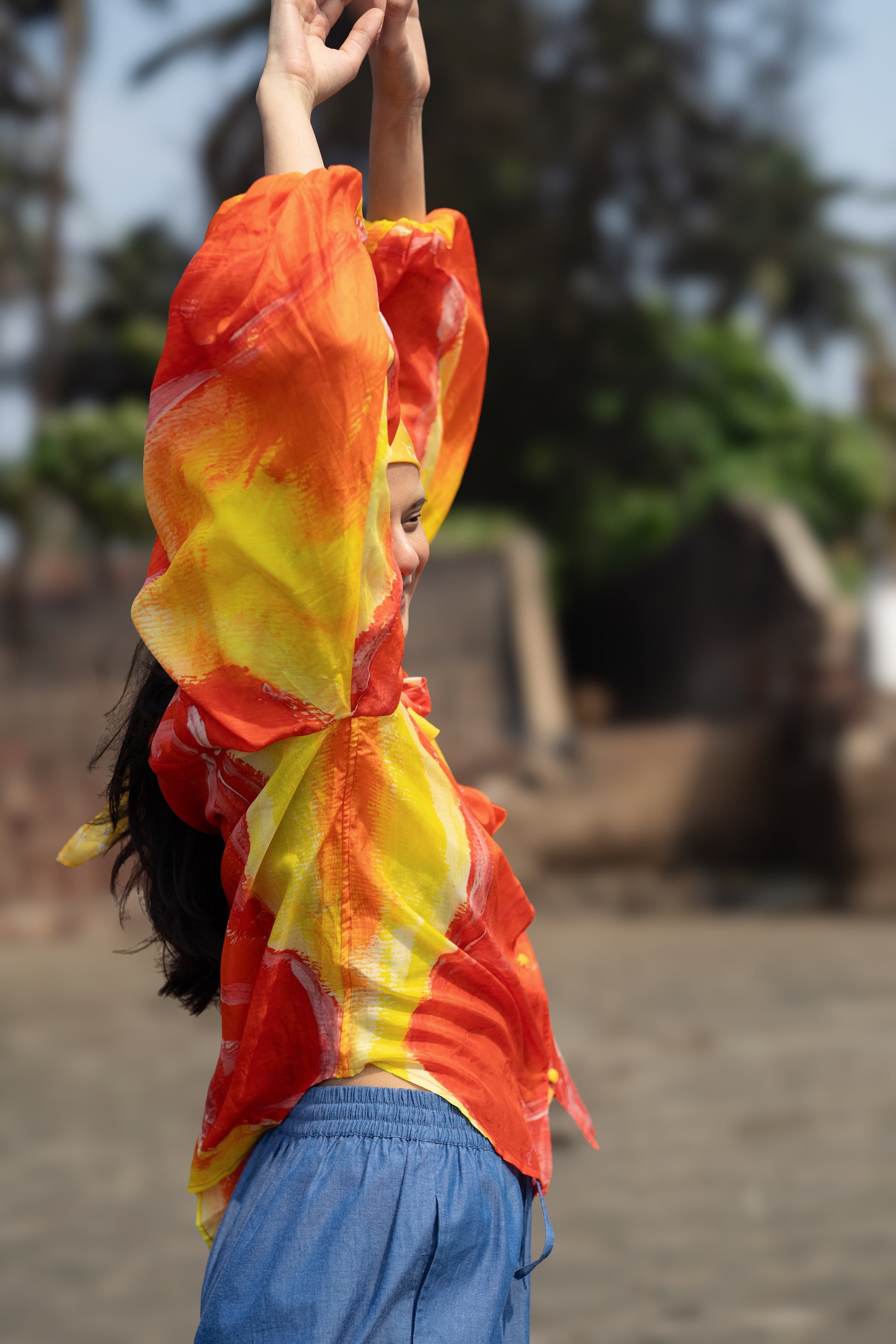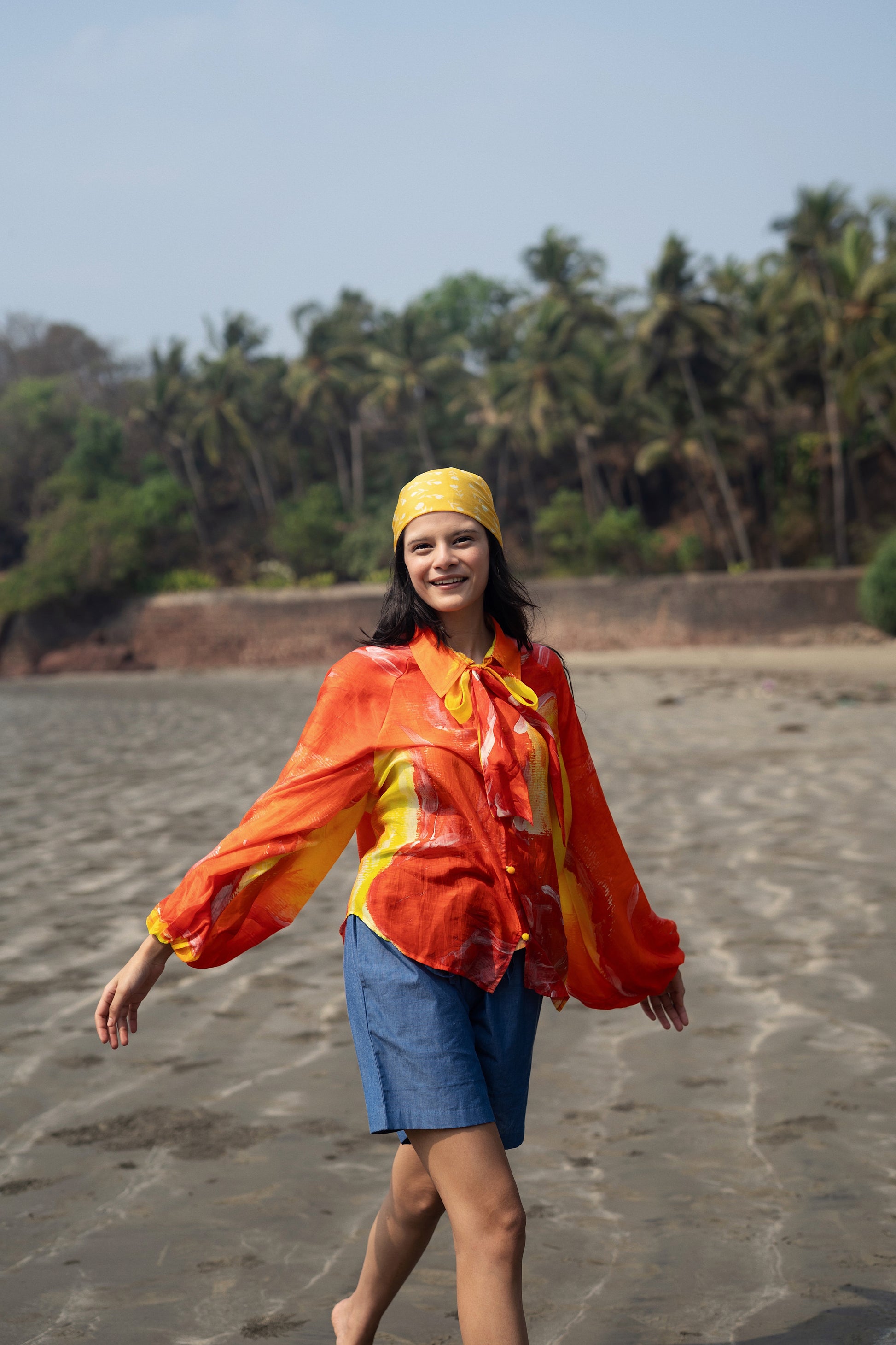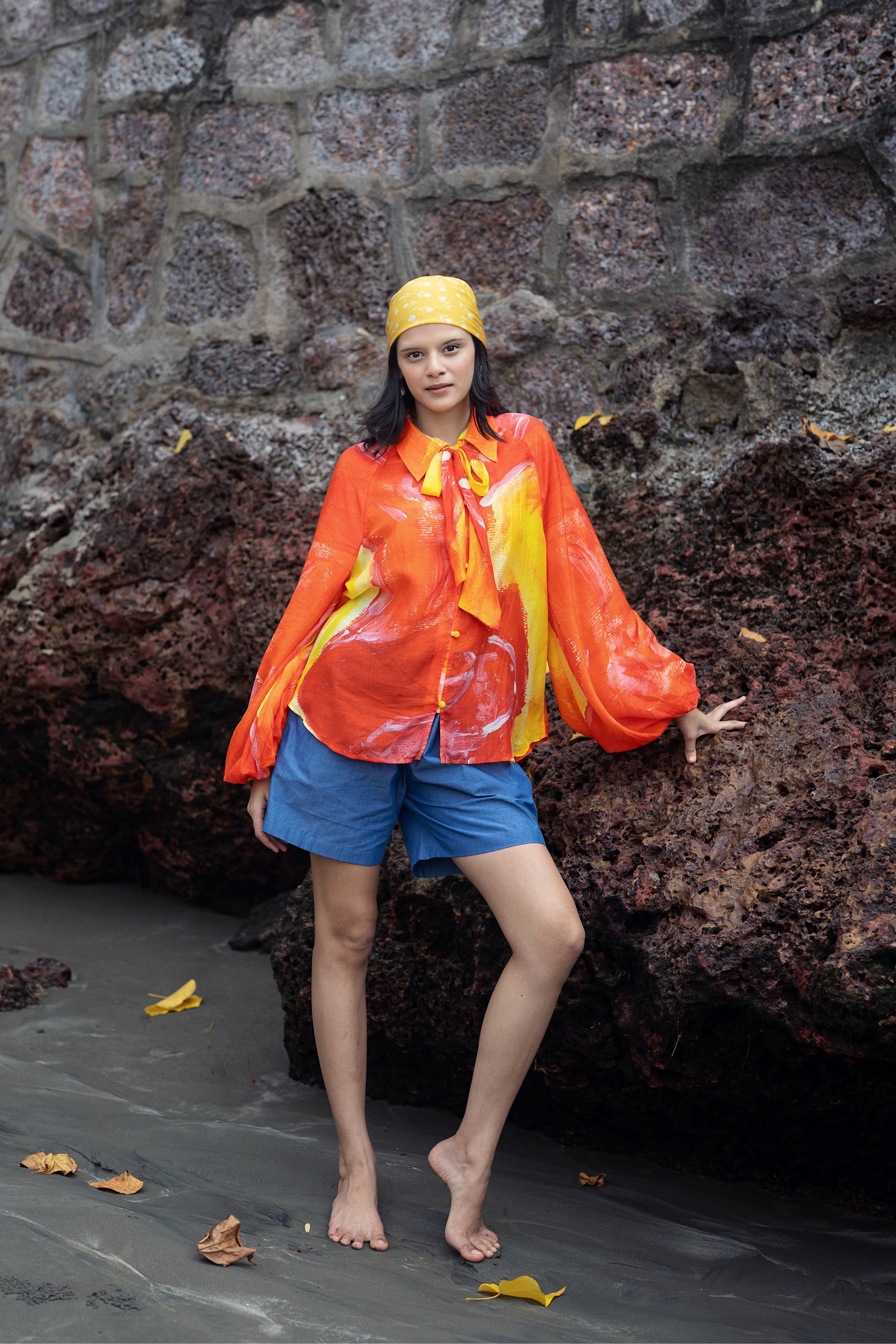 Naked Ninja is a relaxed fit shirt with raglan exaggerated sleeve. It is made from our cotton silk fabrication. This shirt is developed from an artwork of a very talent artist Kanika. She loves taking inspiration from women bodies and love painting them in multiple bomb of bright colours.